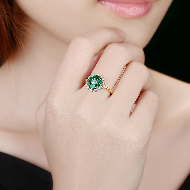 蜜安琪 0.66克拉天然祖母绿宝石戒指 18K金钻石镶嵌彩色宝石女戒