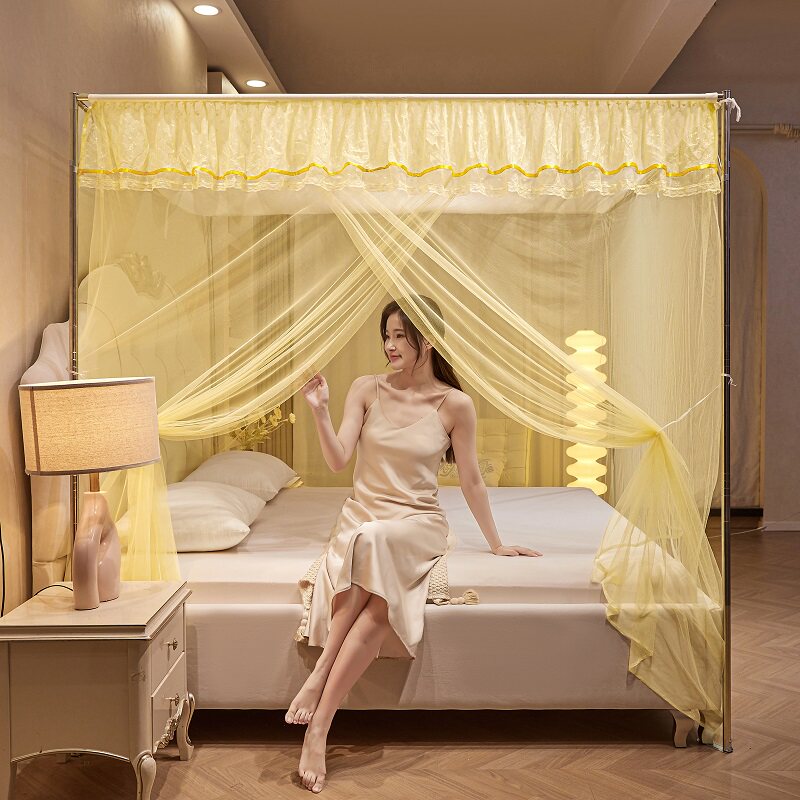 家用单门1.5米防尘顶蚊帐双人卧室穿杆1.8m不锈钢支架加厚1.2米床