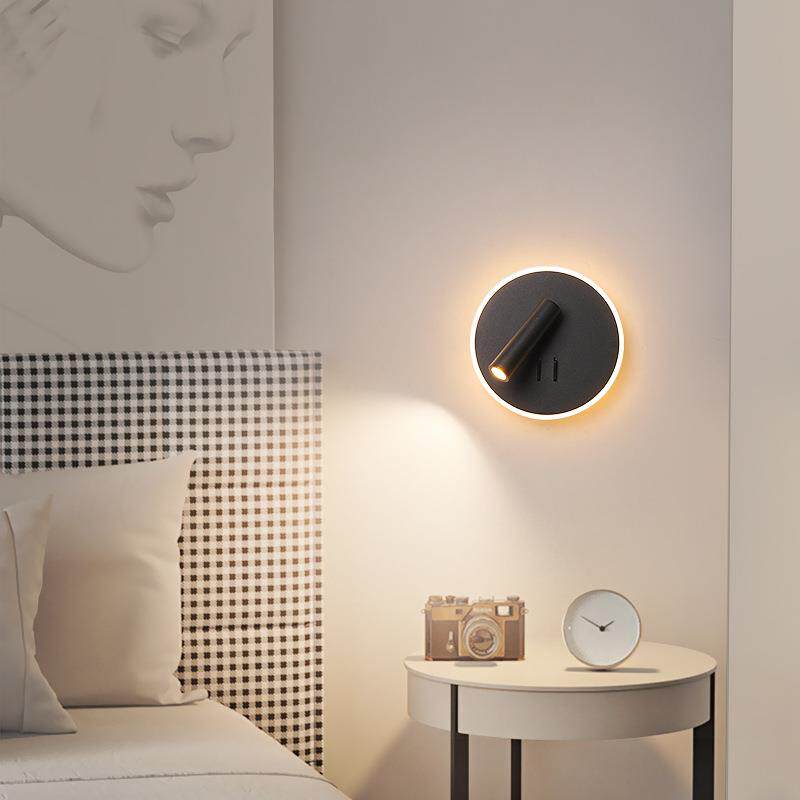 全光谱卧室床头护眼阅读壁灯带开关看书学习射灯创意圆形led射灯