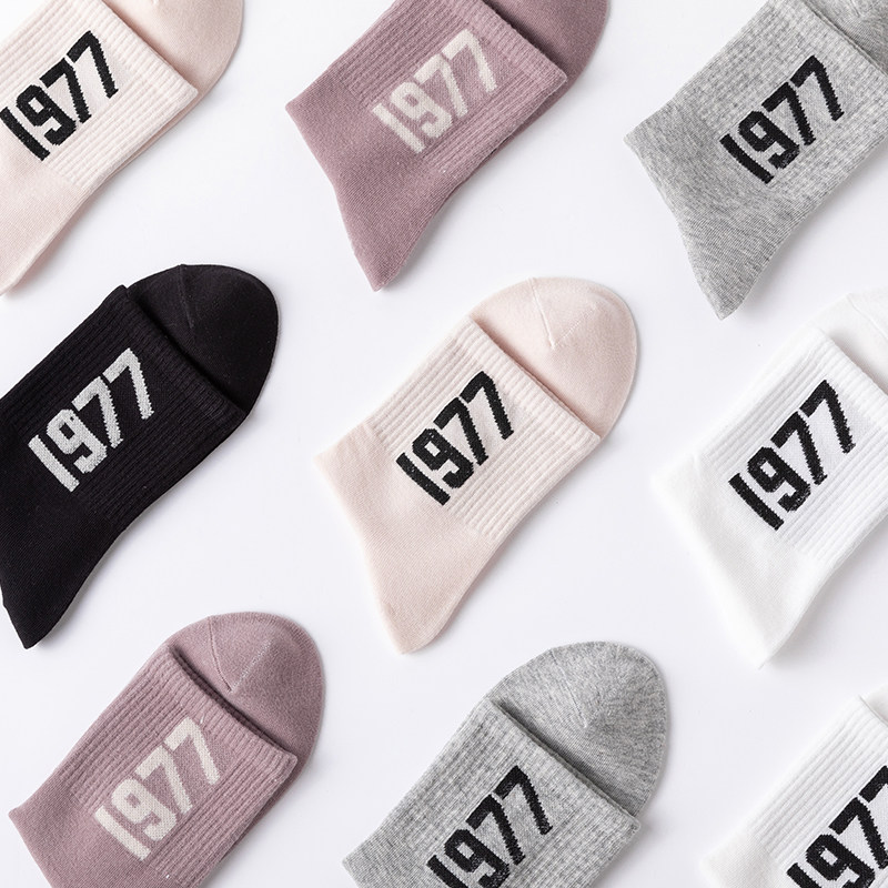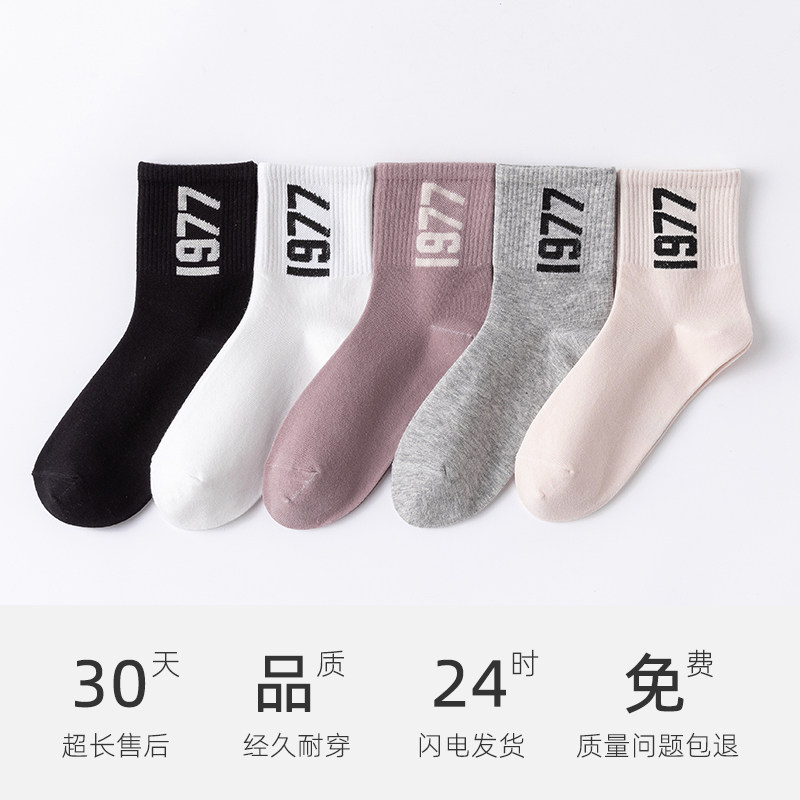 【交个朋友】袜子女棉潮吸汗数字情侣袜子男纯色复古简约中筒袜