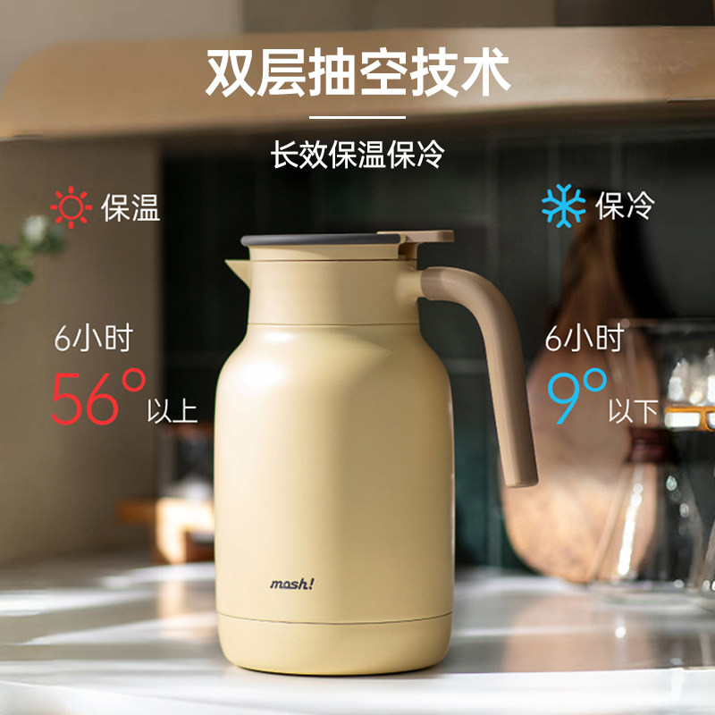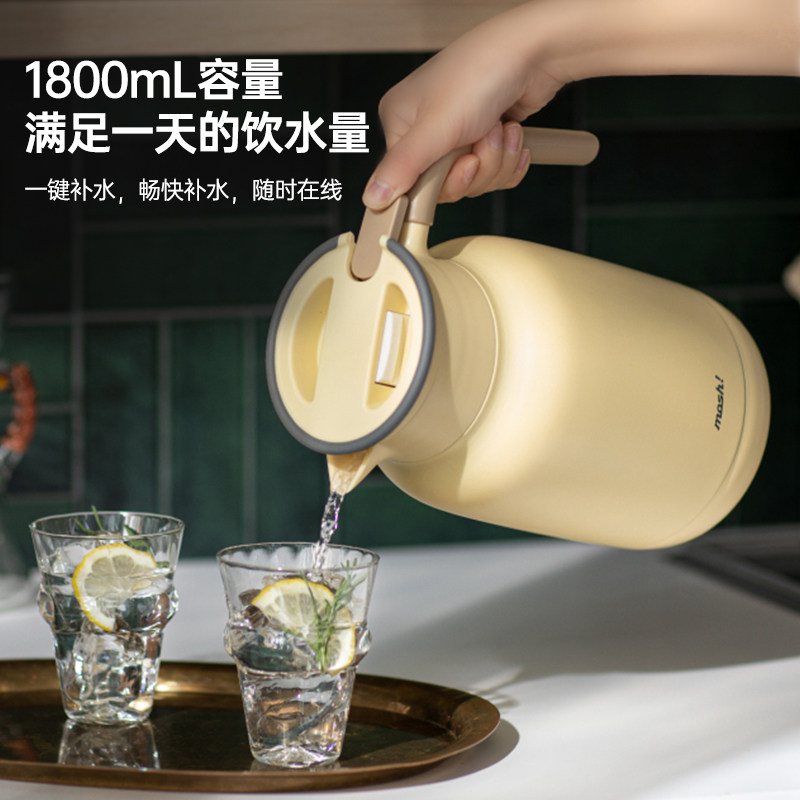 mosh拿铁保温壶家用大容量不锈钢牛奶水壶360旋转水壶1.8L