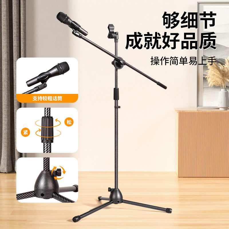 专业麦克风支架落地式碳纤维直播话筒架一体立式三脚ktv舞台神器
