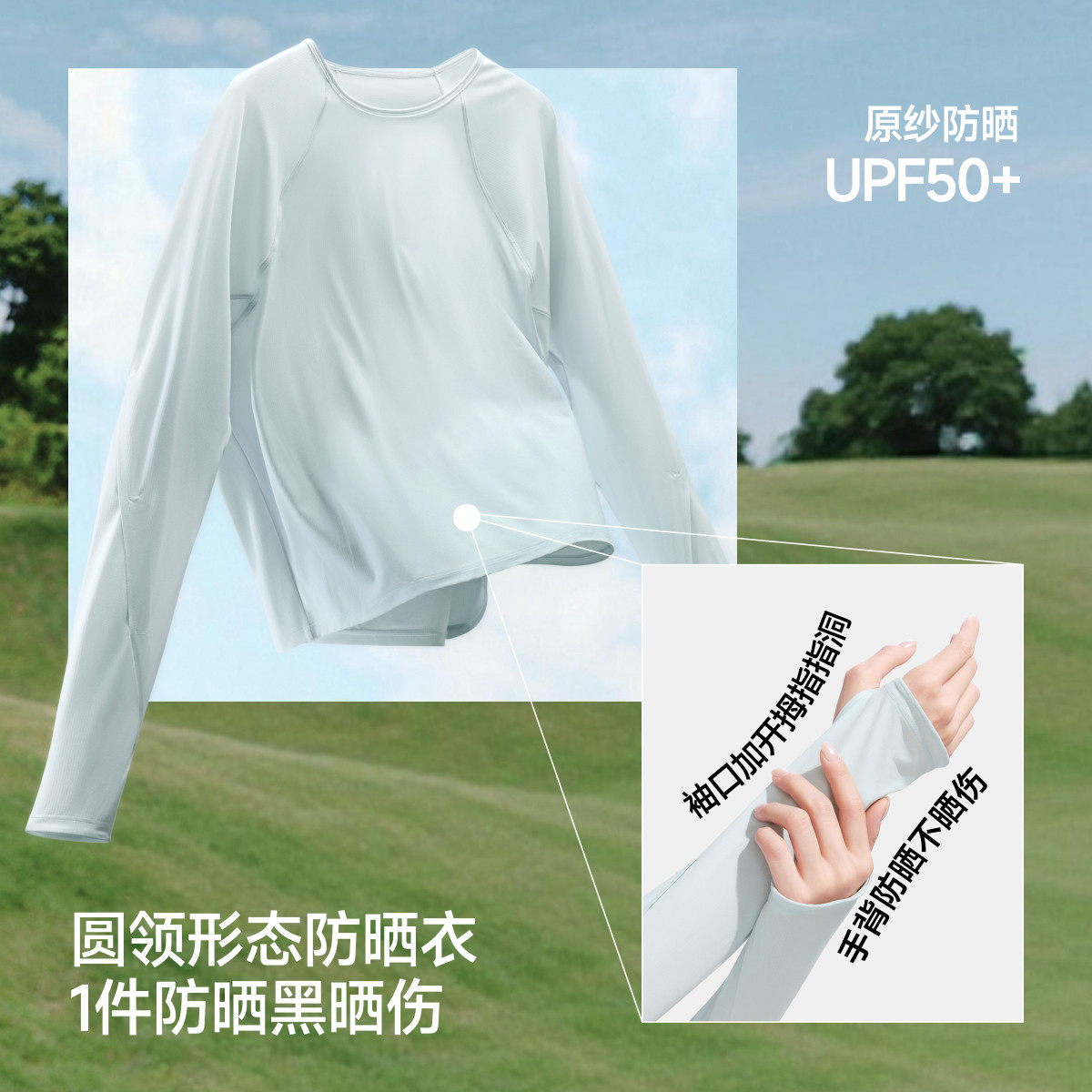 蕉下女士长袖防晒T恤轻薄内搭简约上衣百搭2026新款春夏打底衫白