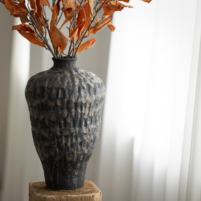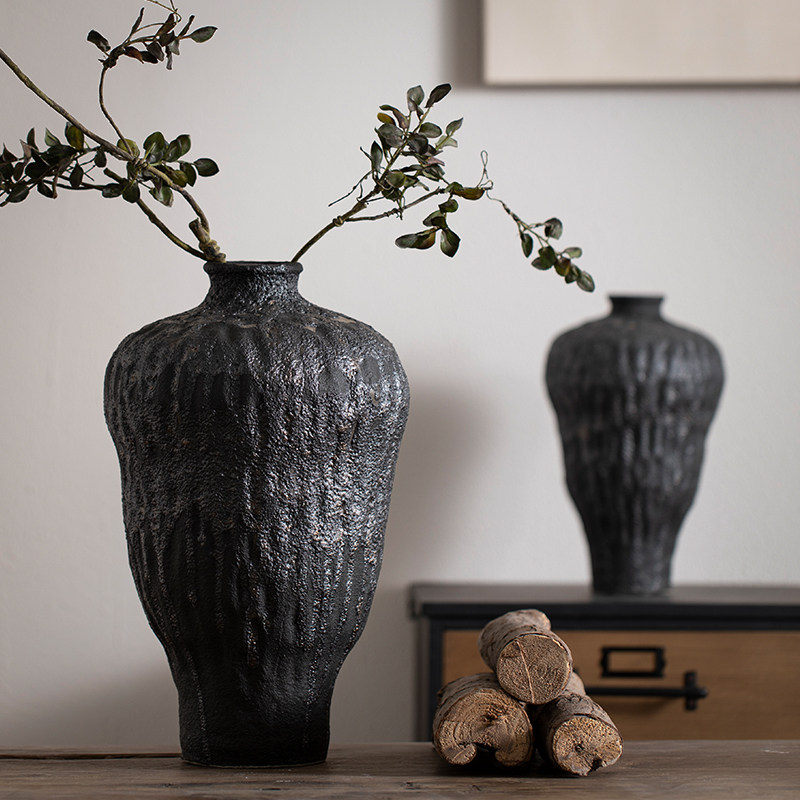 景德镇哑光黑手工侘寂禅意客厅插花装饰摆件台面陶罐干花花瓶玄关