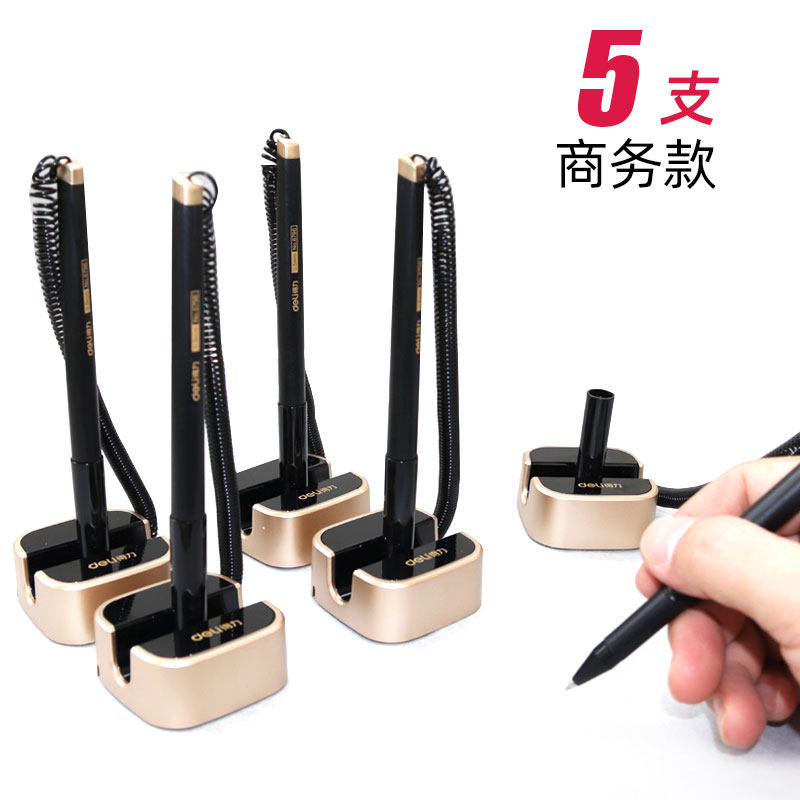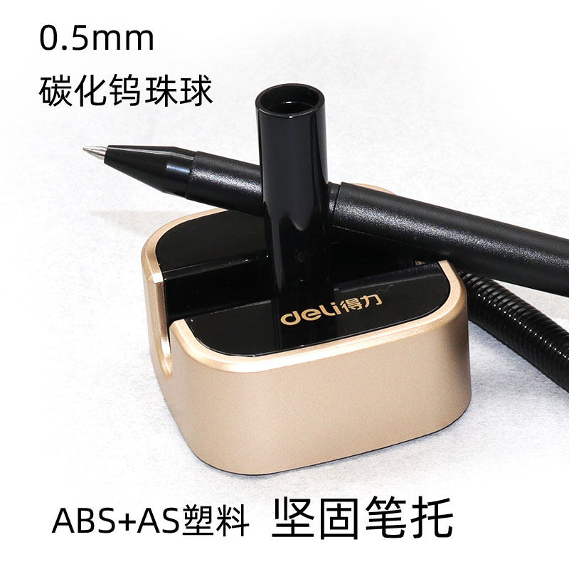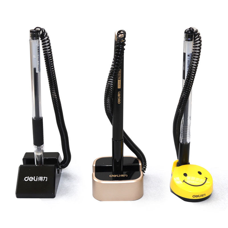 得力台笔中性笔固定签字笔物流医院收银台桌面吧办公室银行前台笔微笑笑脸签字台笔带线粘贴桌面笔柜台笔