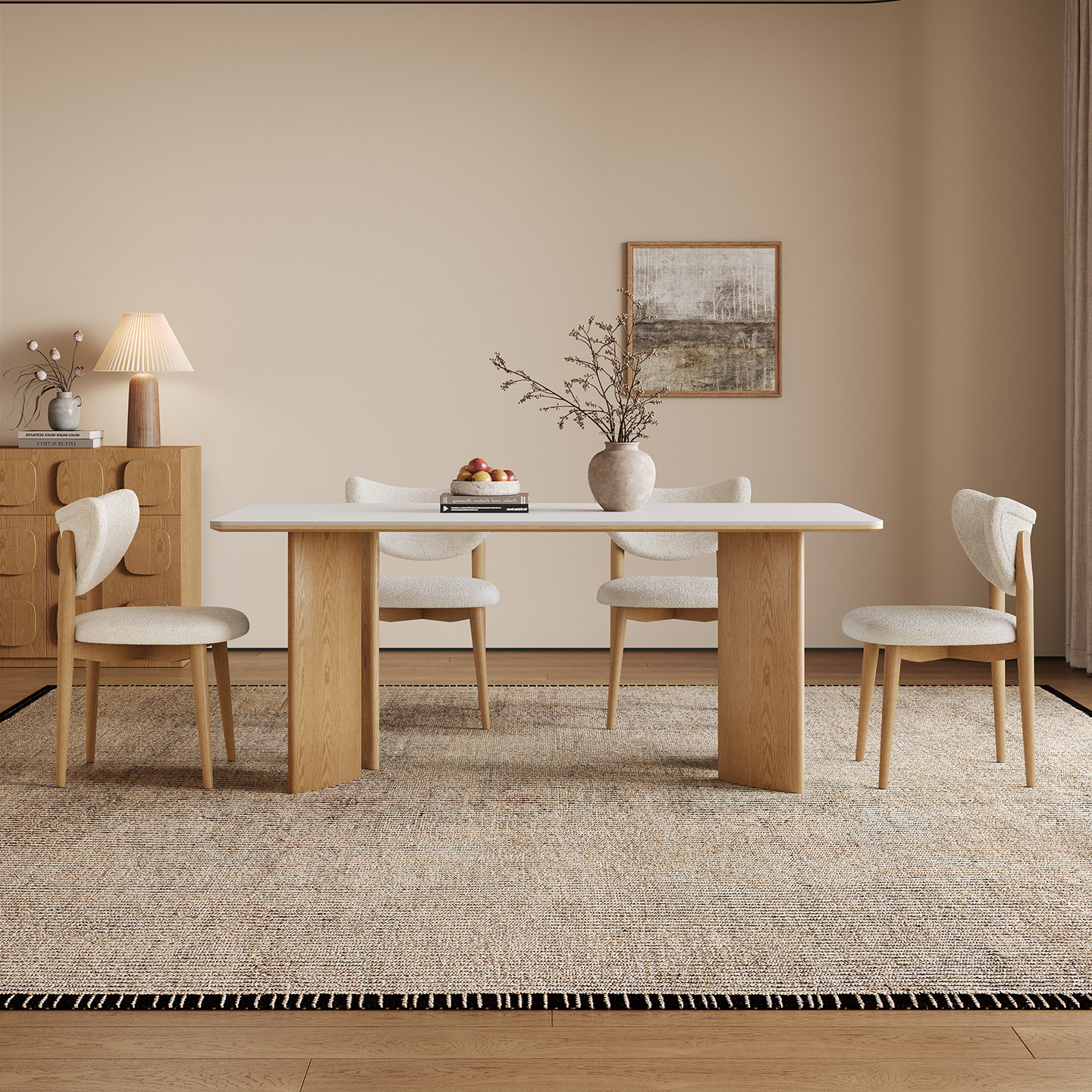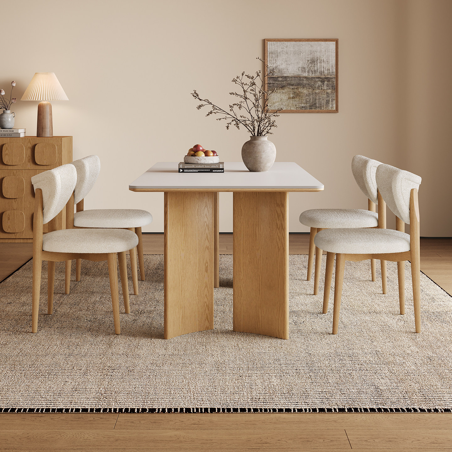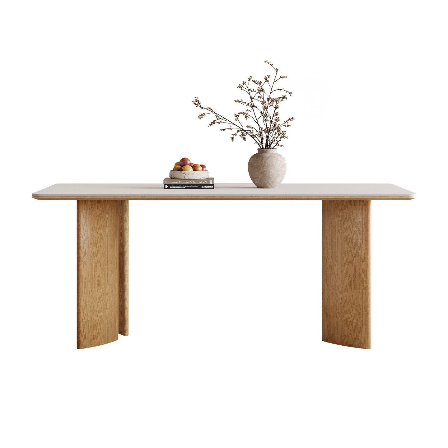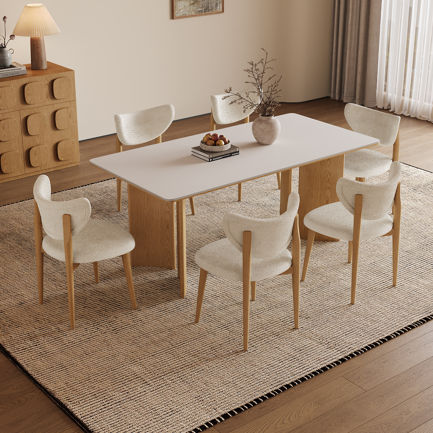 原木奶油风实木餐桌家用小户型 2025 新款日式简约长方形岩板餐桌