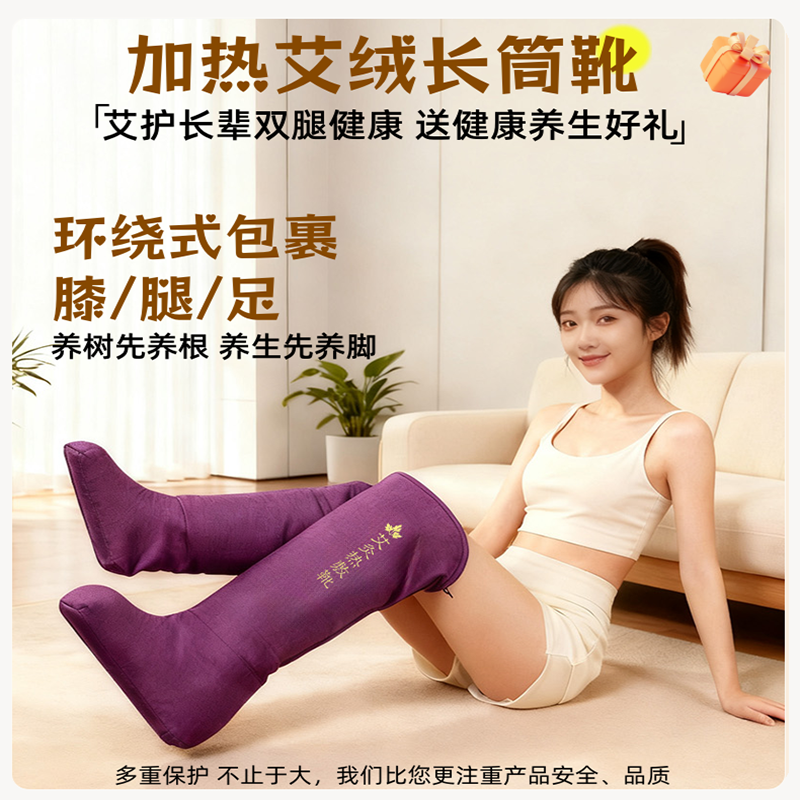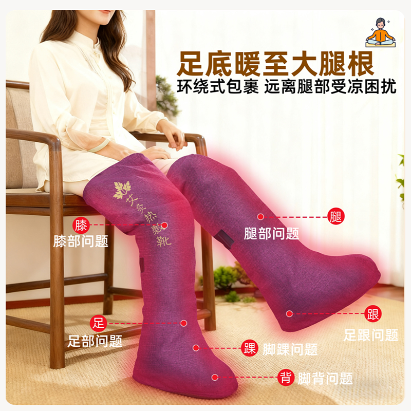 电加热艾绒长筒靴艾灸热敷护膝护腿关节保暖靴保暖腿部理疗神器