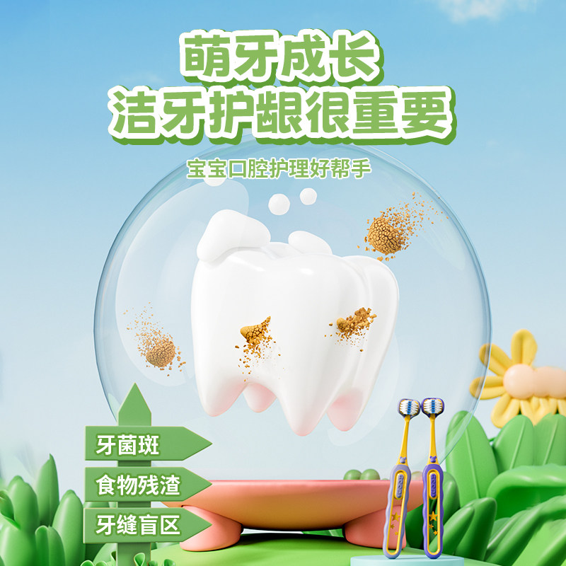 儿童软毛牙刷三面3到6一12岁以上婴儿u型3d全面包裹清洁换牙期