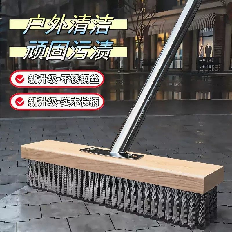 户外长柄硬毛洗地刷子不锈钢丝地板刷地神器庭院地面强力清洁工具