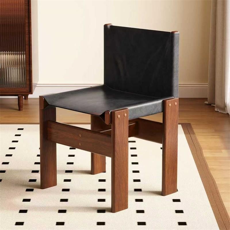 实木餐椅家用餐厅餐桌椅子客厅茶桌木头凳子靠背中古风洽谈书桌椅