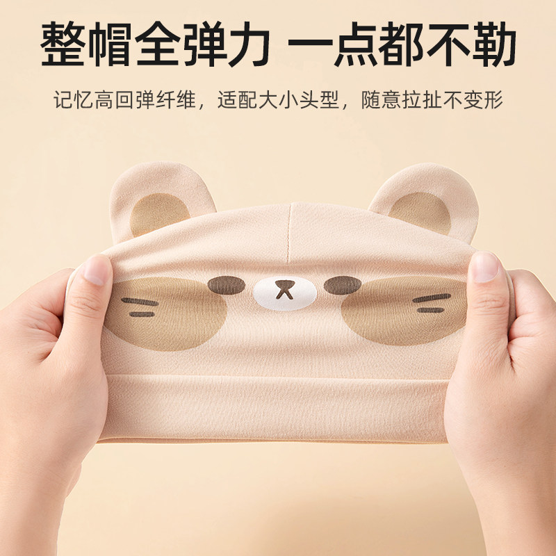 尼多熊胎帽新生婴儿帽子0到3个月纯棉宝宝囟门帽小月龄秋冬双层