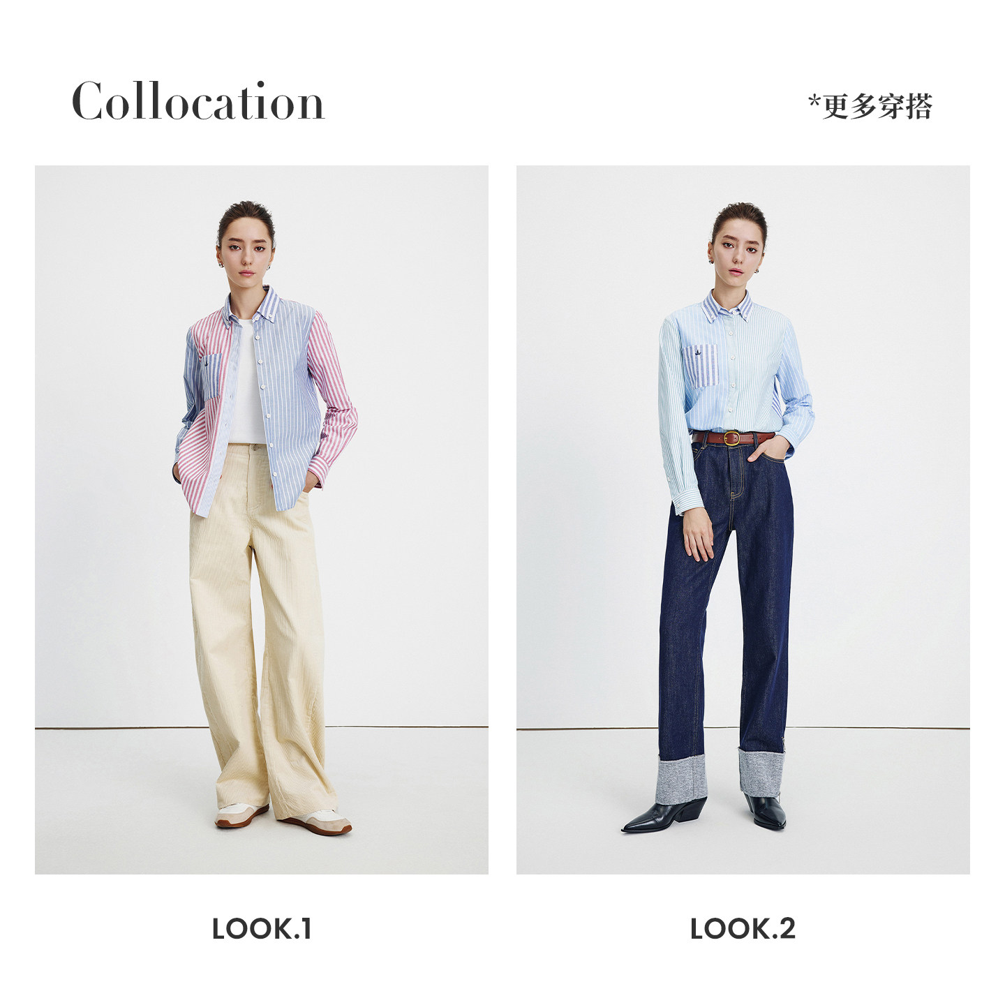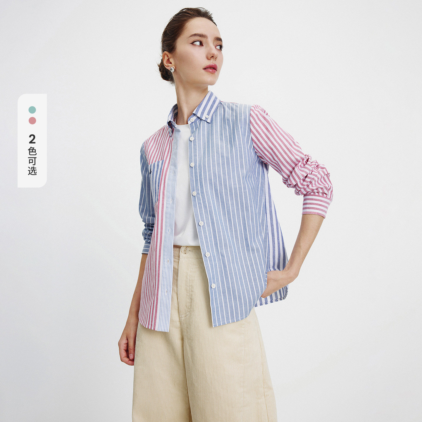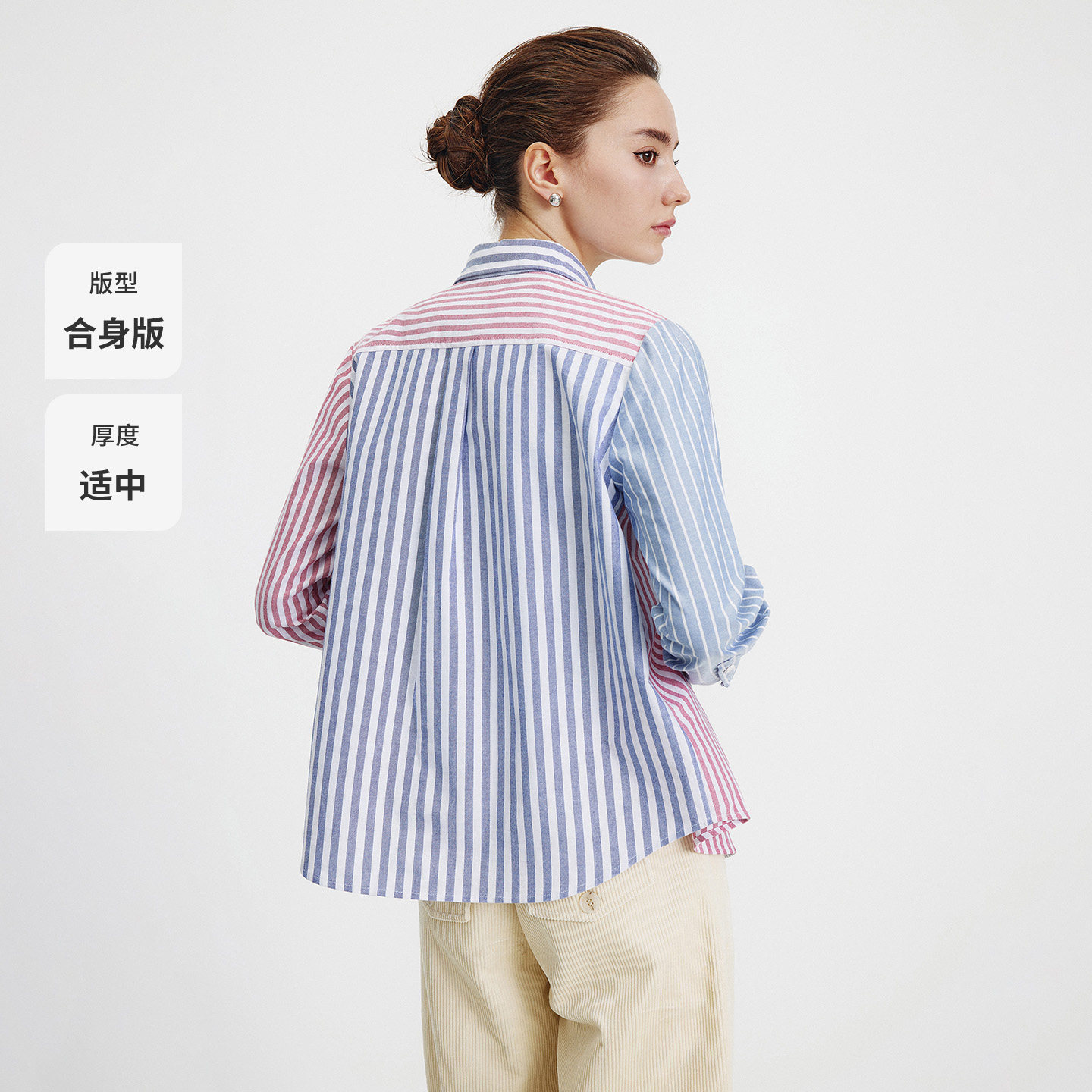 Navigare意大利小帆船纯棉长袖衬衫女春秋季新款时尚拼接条纹衬衣