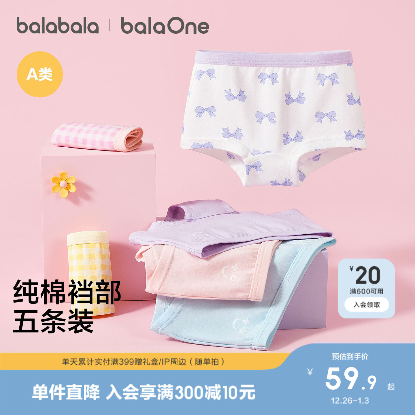巴拉巴拉儿童内裤棉a类女童平角短裤小童中大童宝宝四角裤五条装
