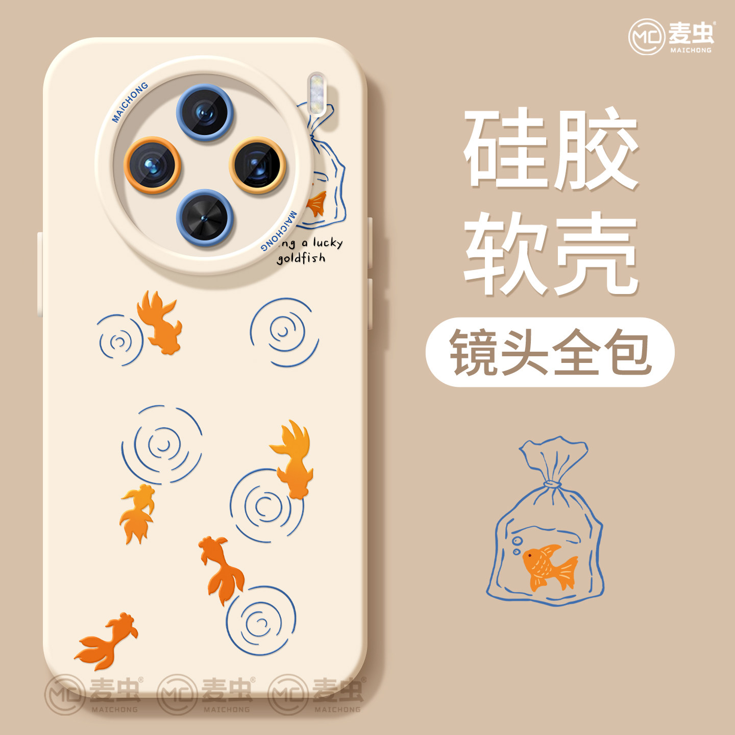 适用vivox300手机壳ultra女款x100s保护套x80pro硅胶x70全包防摔x60高级50新款x200个性vivo好看金鱼pro+软外