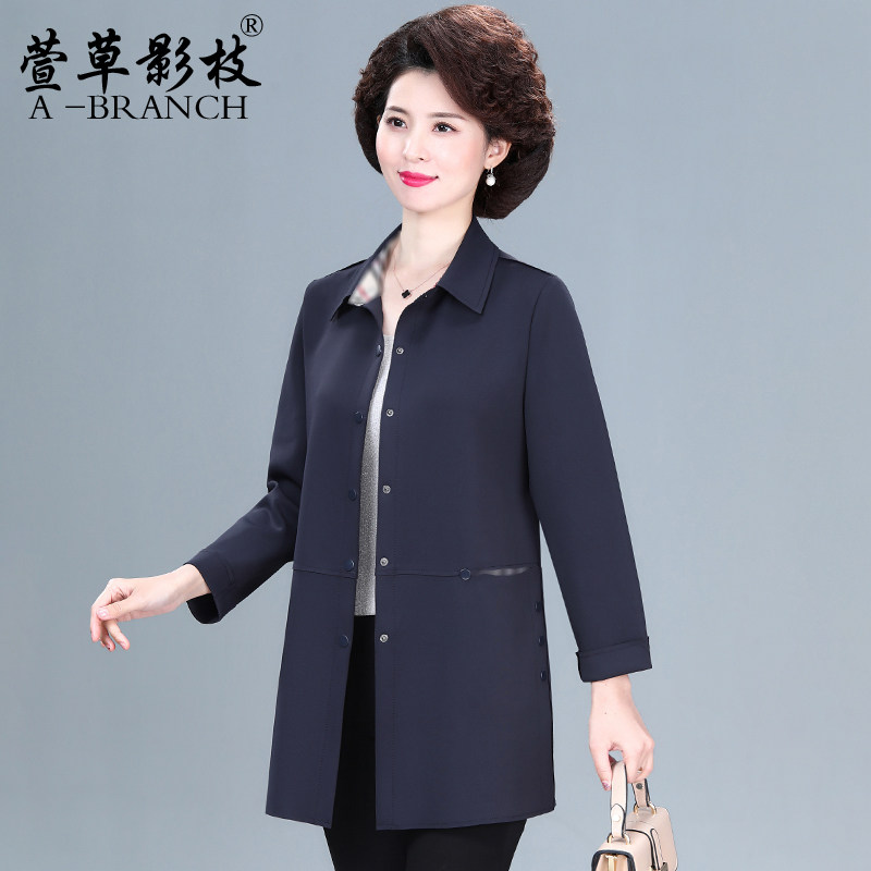 妈妈春秋外套洋气大码中年女风衣时尚宽松中老年人秋装贵夫人上衣