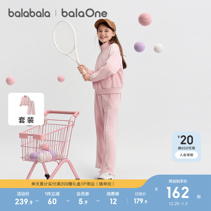 巴拉巴拉童装女童套装儿童长袖两件套2025新款秋冬装运动休闲甜美