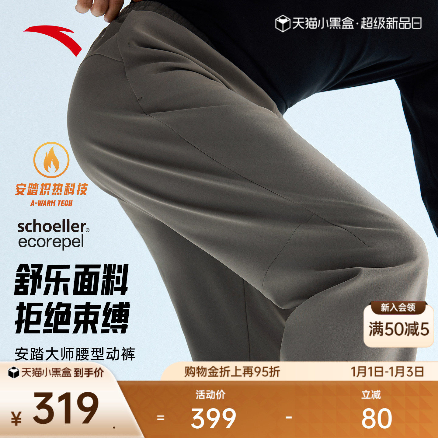 【林孝埈同款】安踏大师腰型动裤丨舒乐加绒运动长裤男152547510N