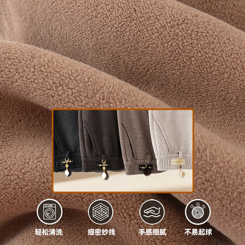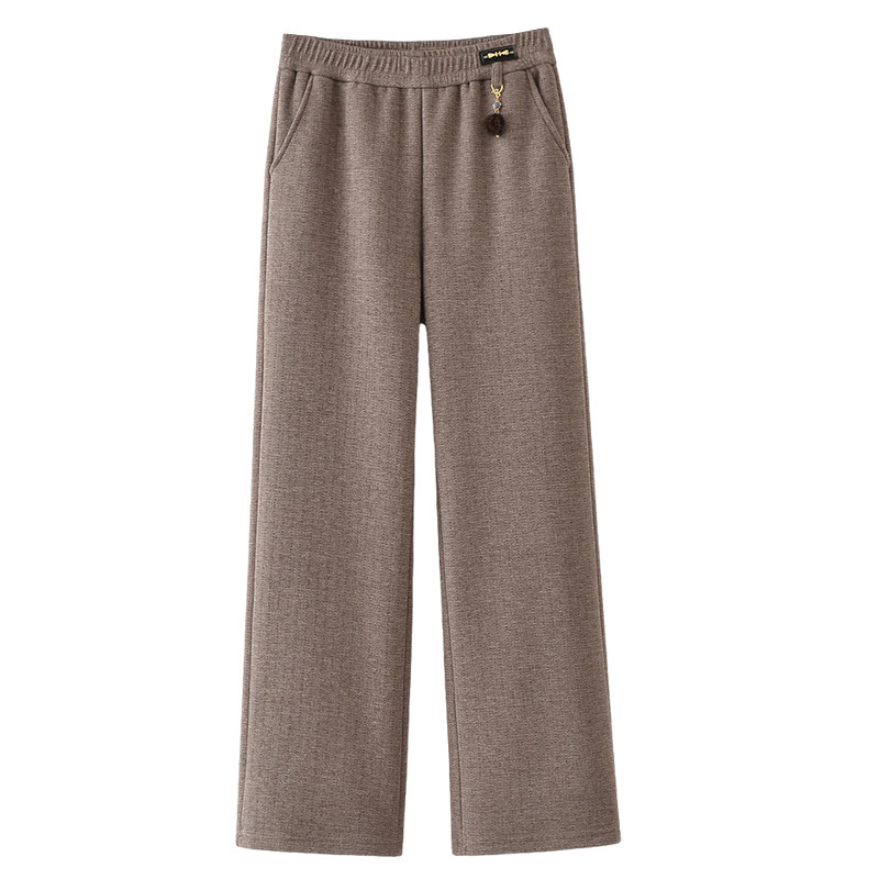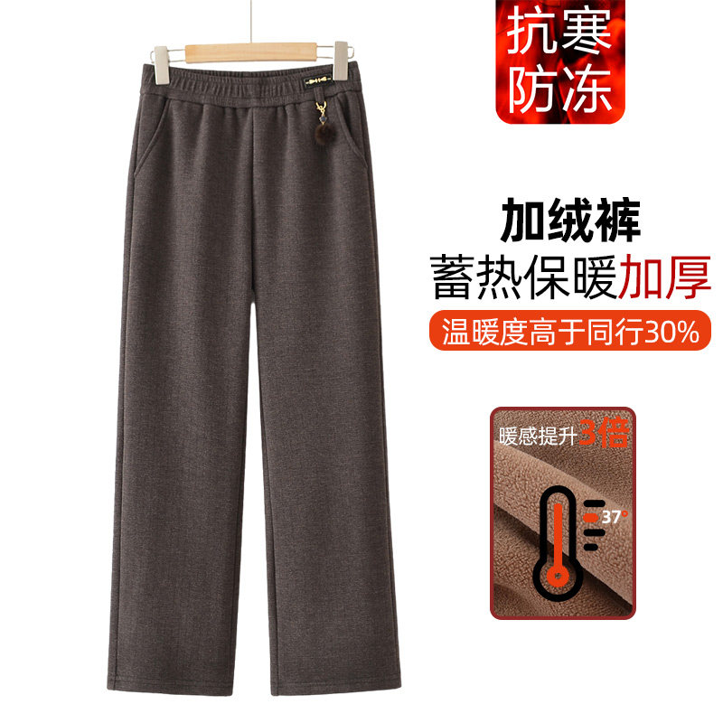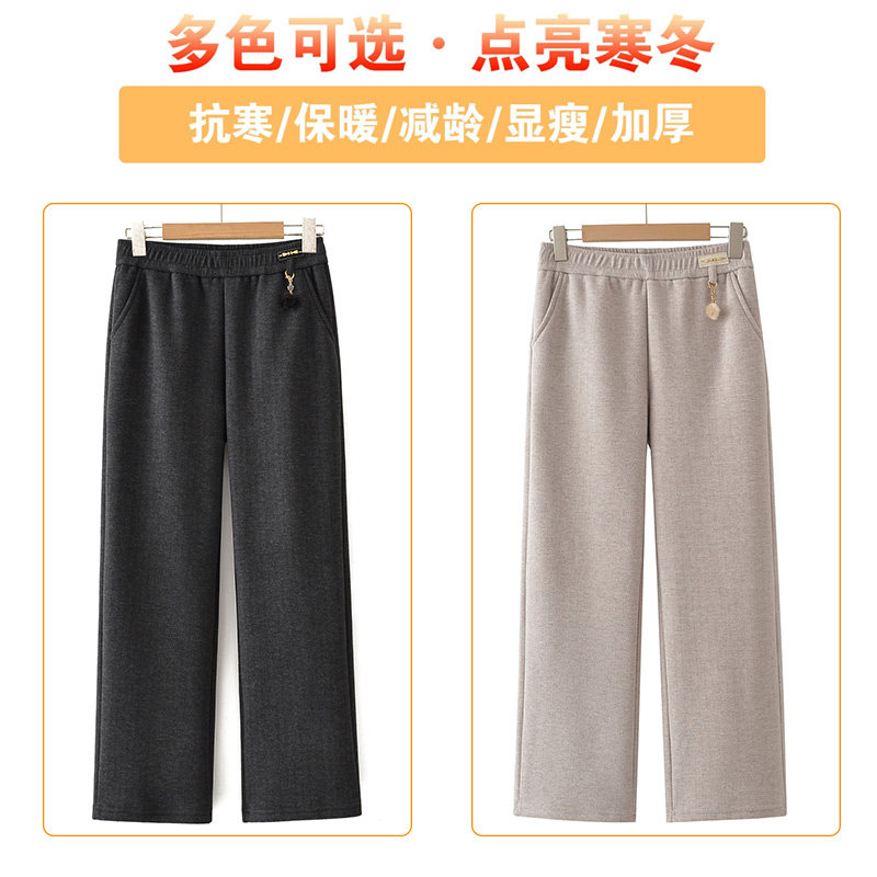 妈妈秋冬毛呢直筒裤洋气中老年人女裤阔腿裤冬季加绒加厚长裤黑色
