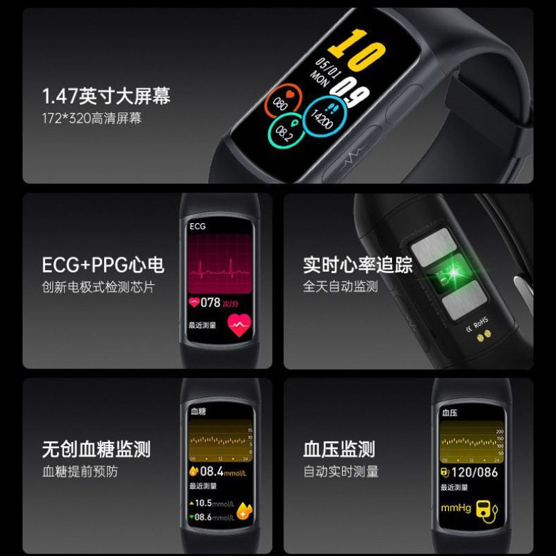 无创血糖智能手环尿酸血脂血压心率蓝牙通话多功能健康手表
