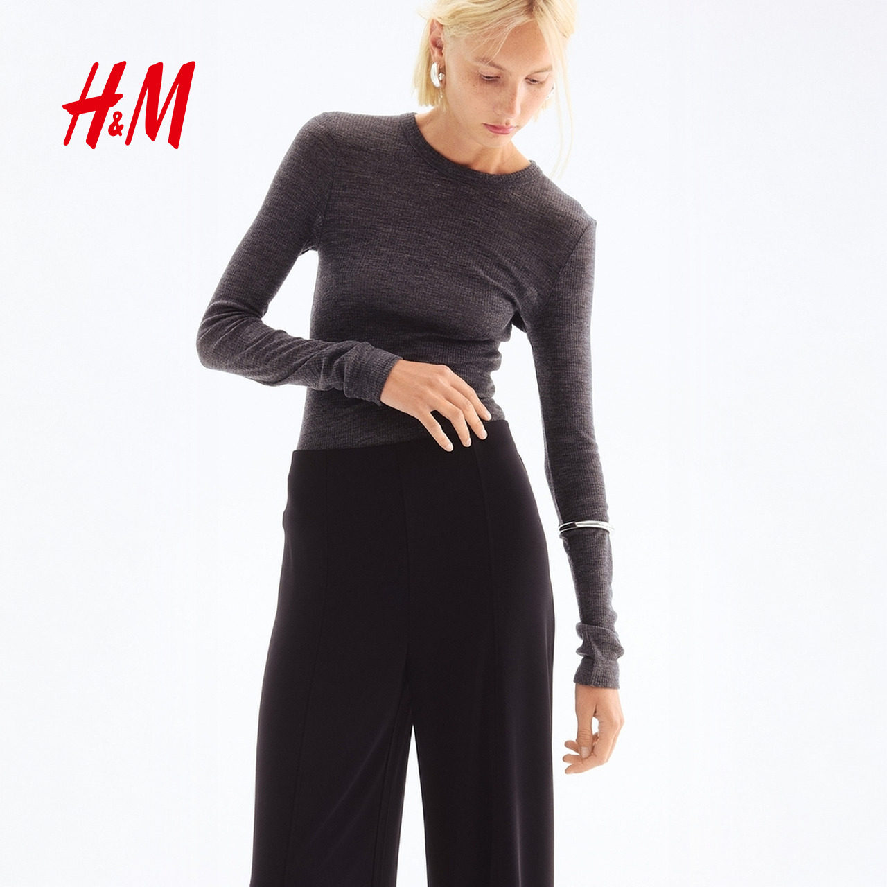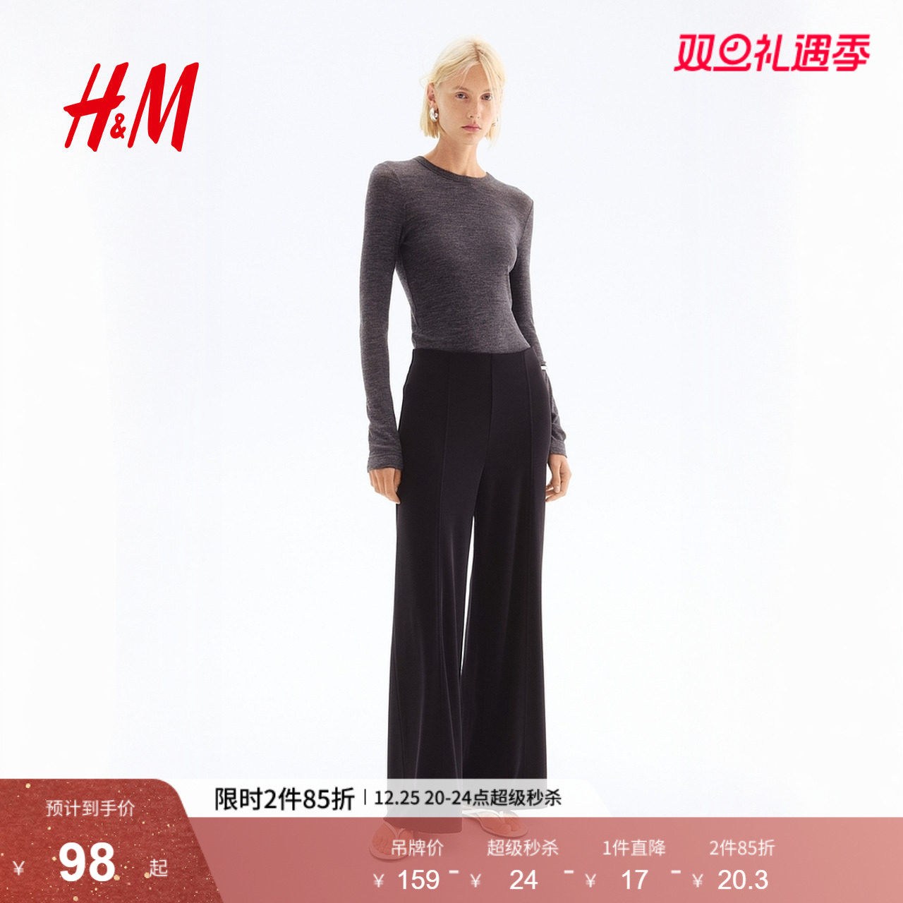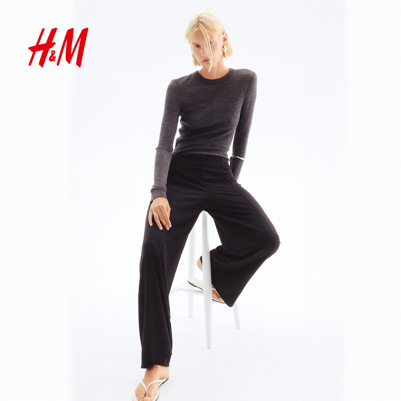 HM女装裤子2025冬季新款时尚简约柔软舒适气质休闲阔腿裤1301011