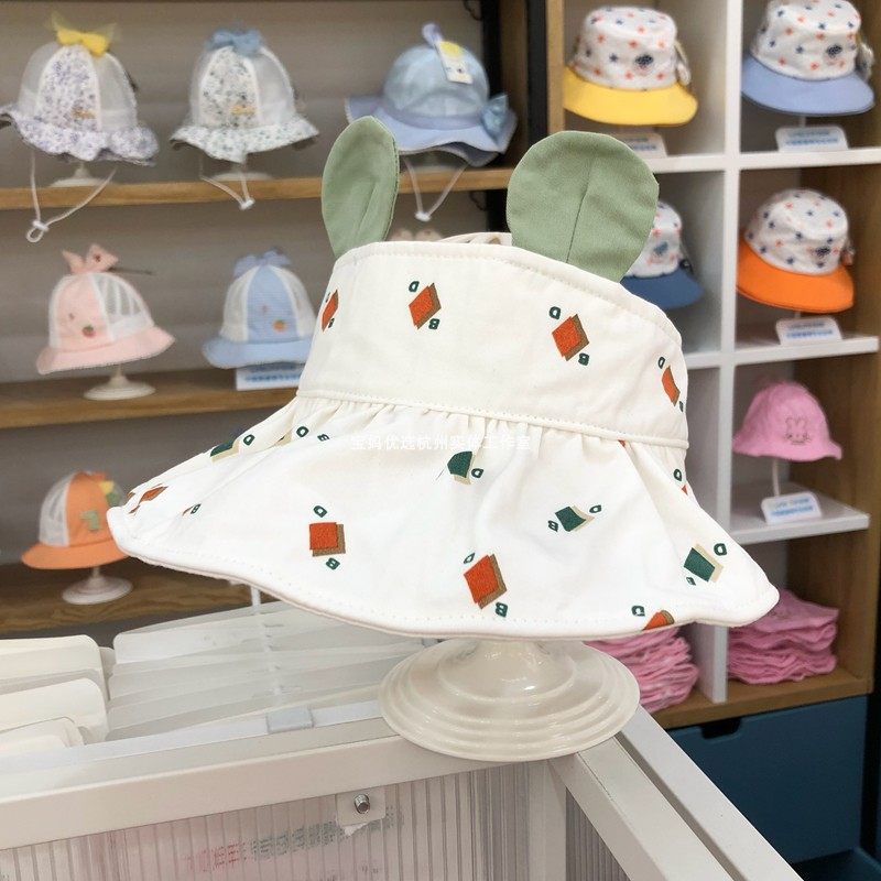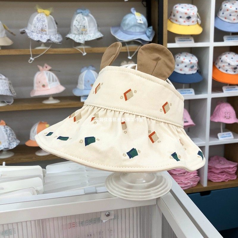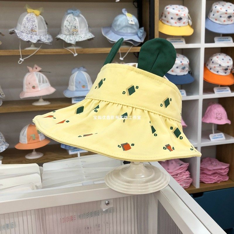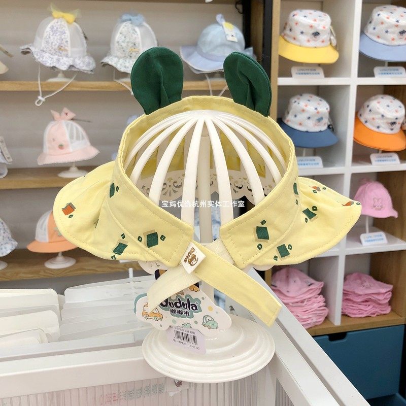 嘟嘟啦夏季薄款婴儿遮阳帽大帽纯棉男女宝宝空顶防晒帽耳朵鸭舌帽