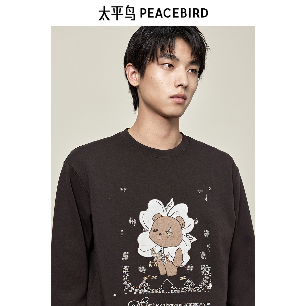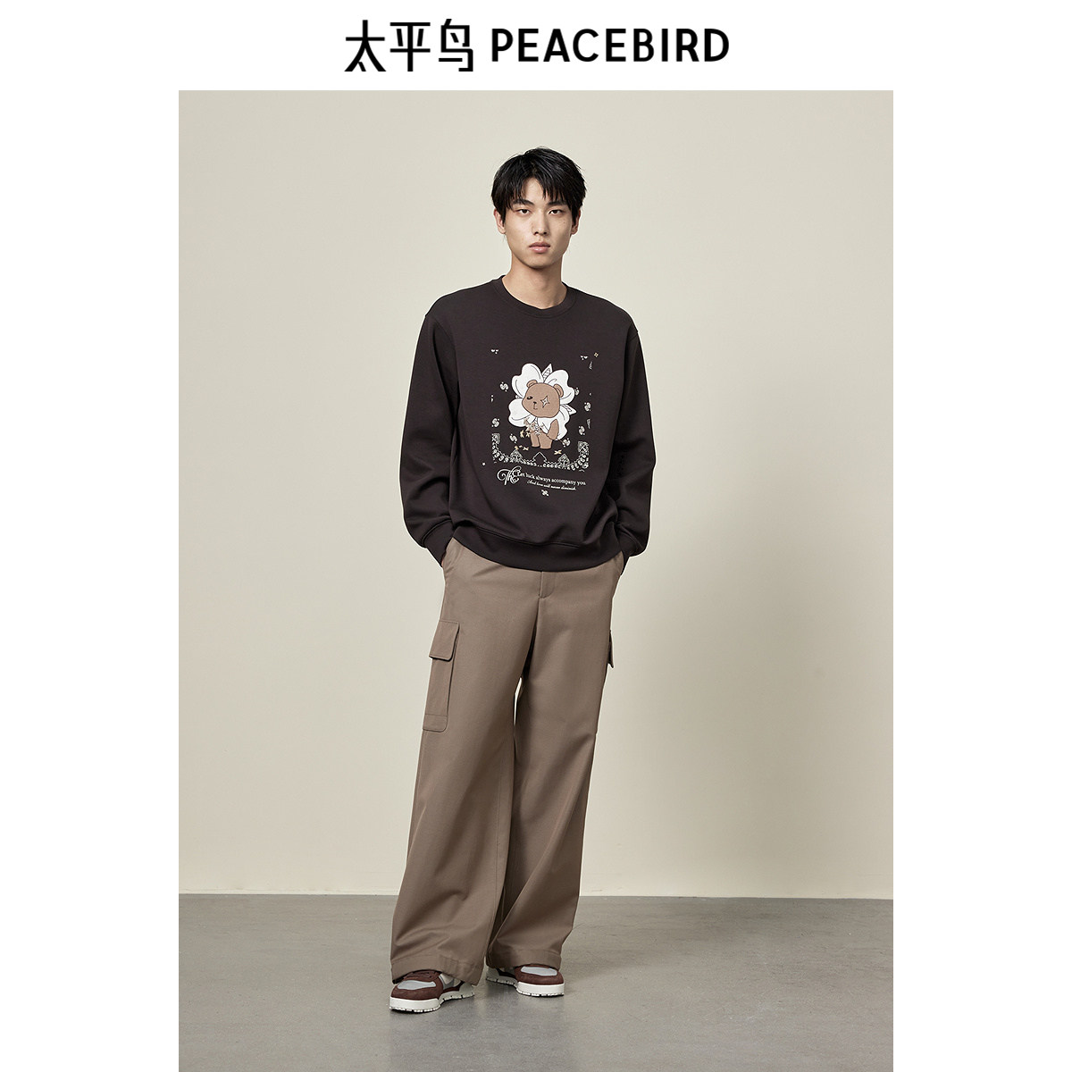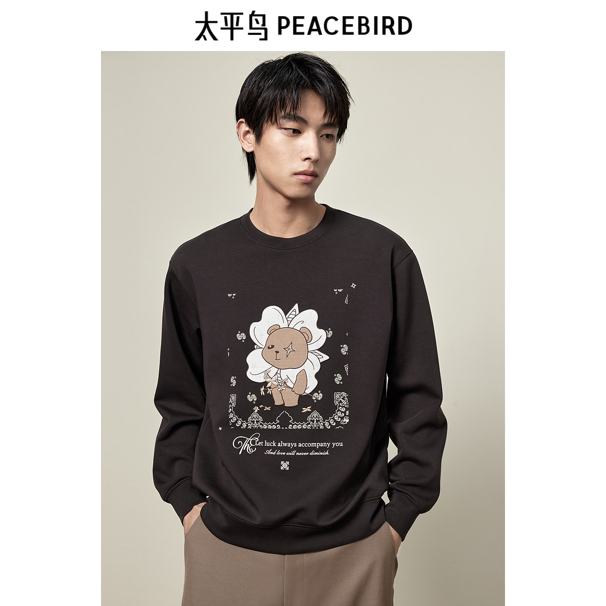 太平鸟男装 秋季圆领套头卫衣男卡通图案绣花宽松休闲运动上衣潮