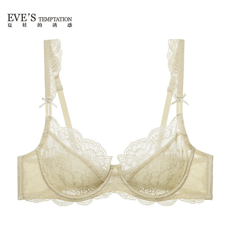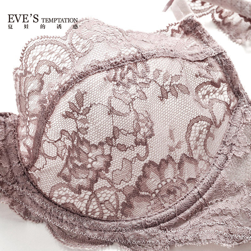 夏娃的诱惑音符本命年大红色内衣女大胸显小薄款胸罩超薄大码文胸