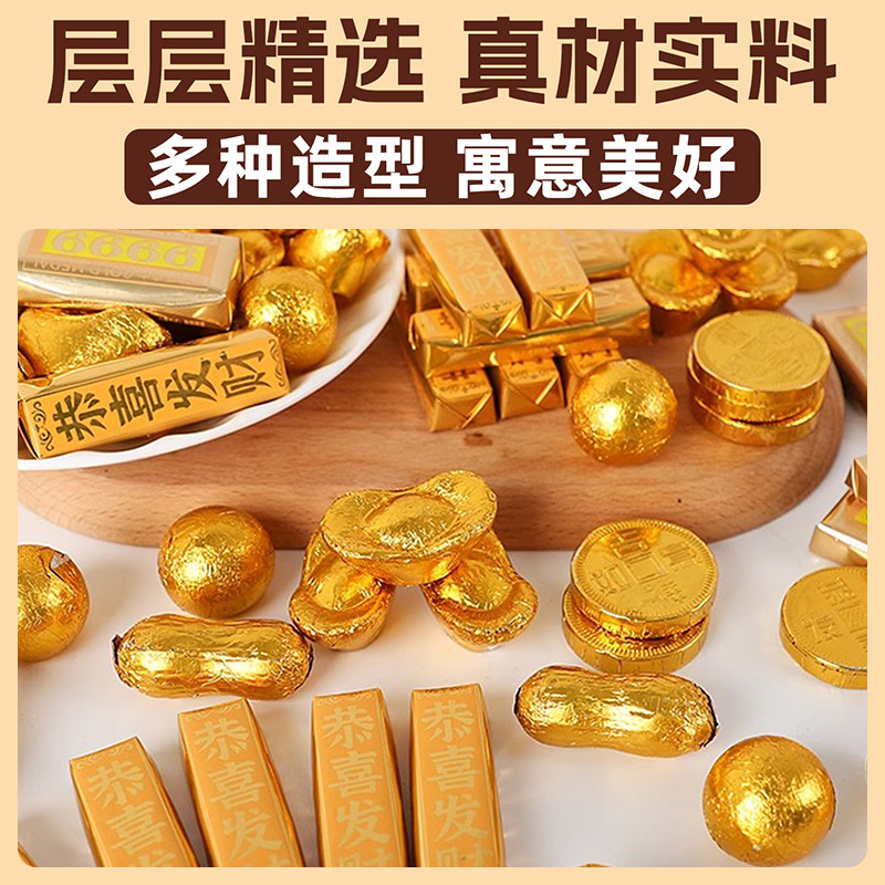 金币混合黑巧克力元宝送礼喜糖果批发年货零食大礼包(代可可脂)