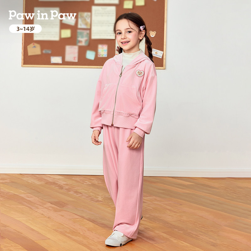 PawinPaw卡通小熊童装25年秋冬新款女童宽松运动套装连帽休闲