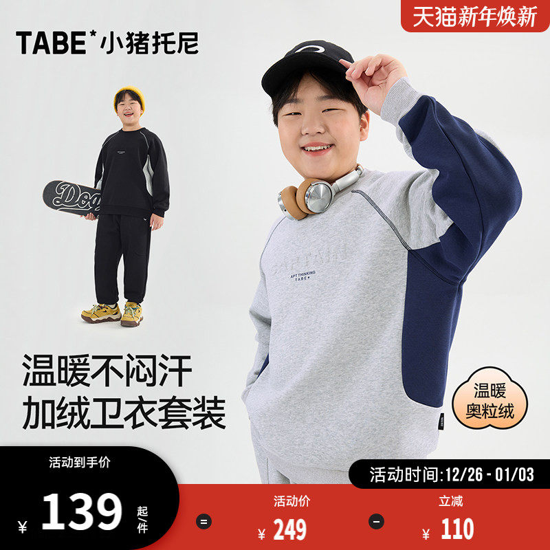 【卫衣套装】小猪托尼男童加绒两件套中大童加绒加厚休闲秋冬保暖