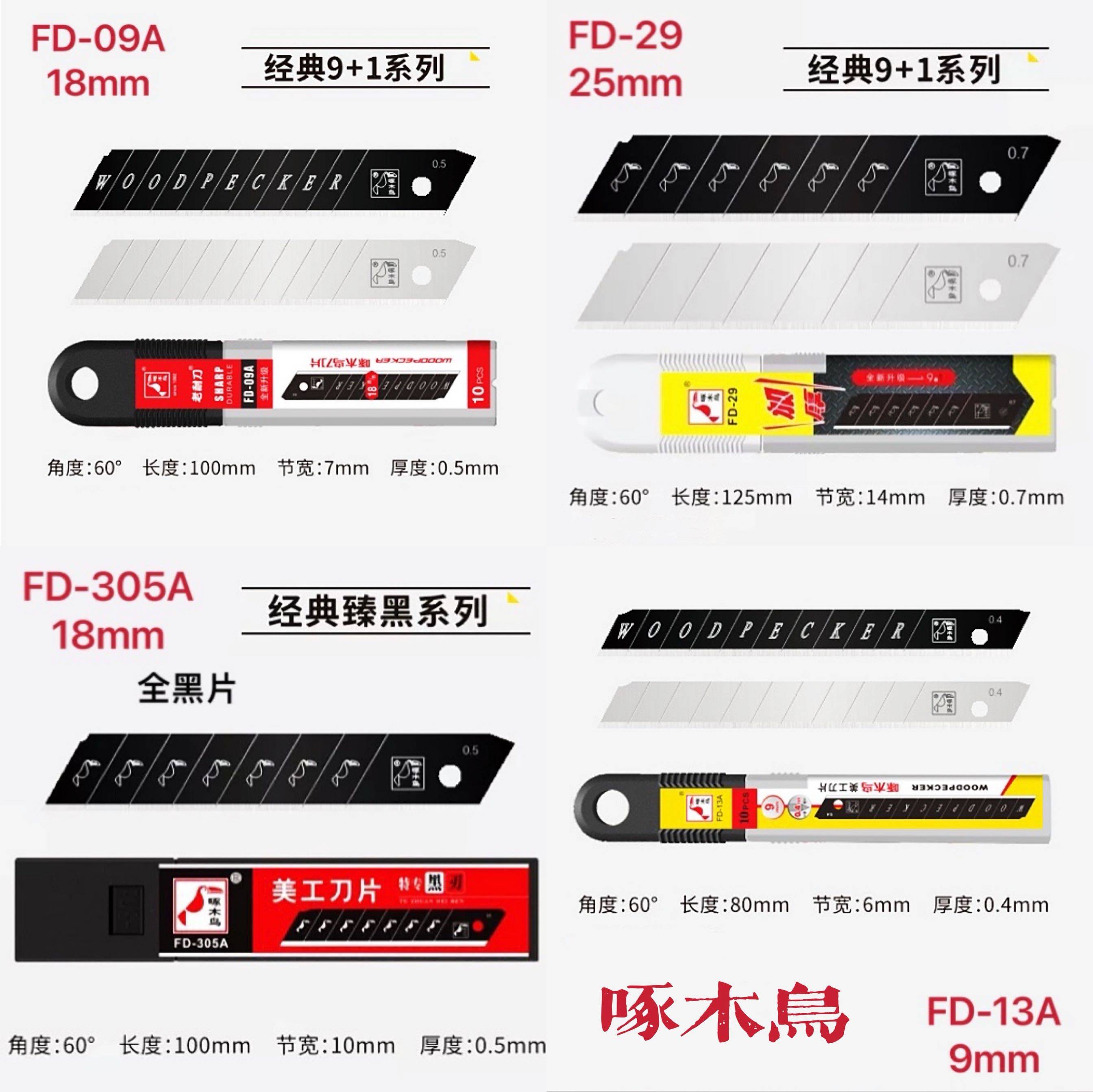 啄木鸟美工刀具老耐刀加厚壁纸刀工业级刀架拆箱贴膜美缝刀FD-09A