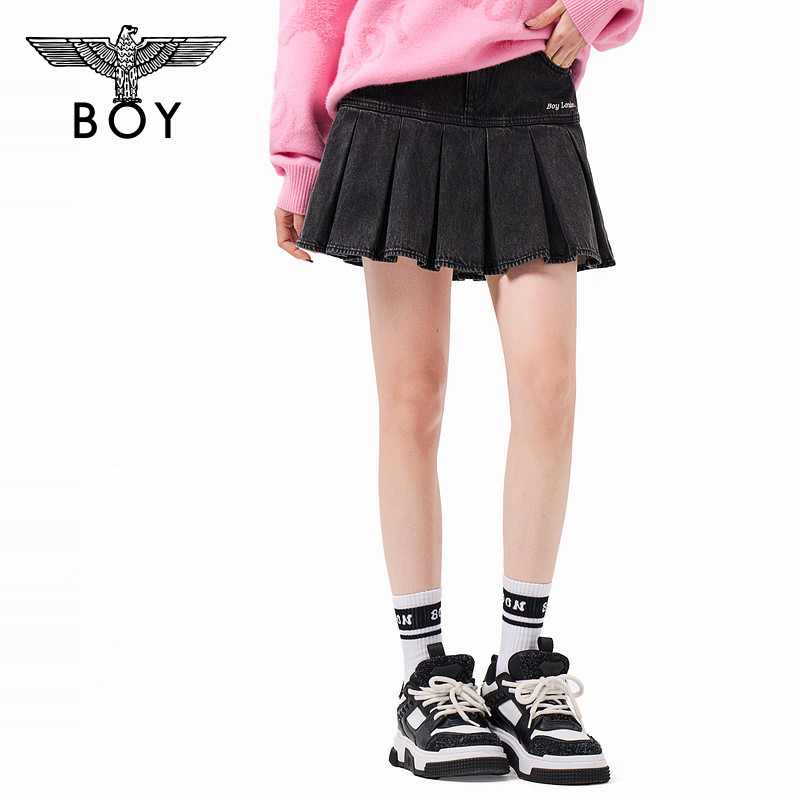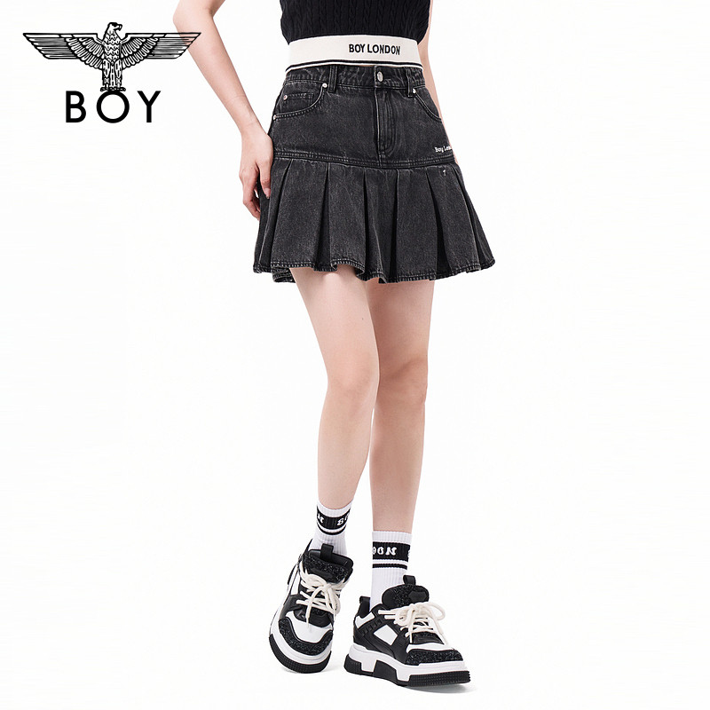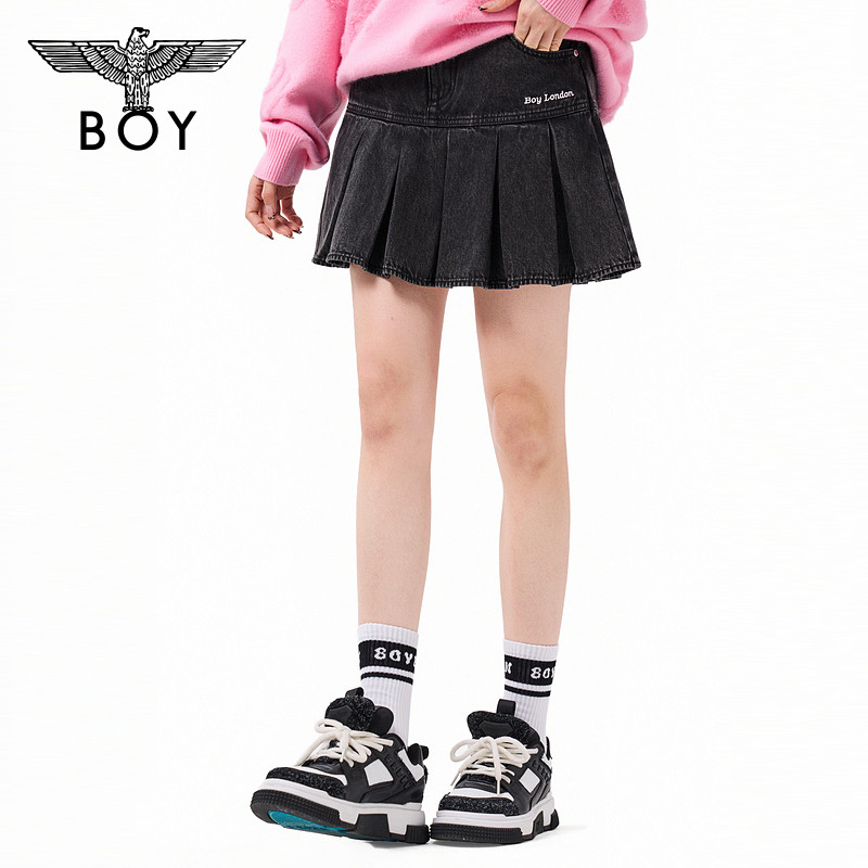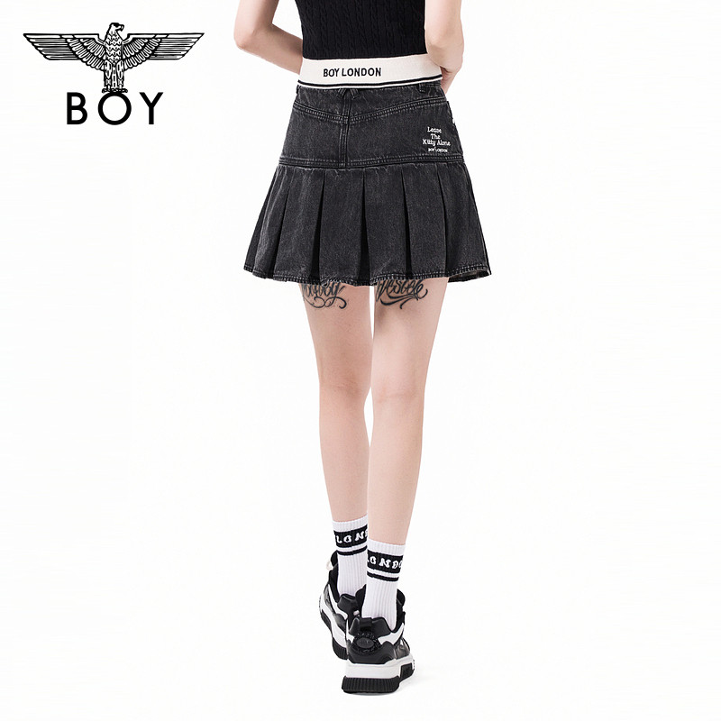 BOYLONDON25新款夏季女款百褶黑色潮牌时尚朋克休闲半身裙W59003