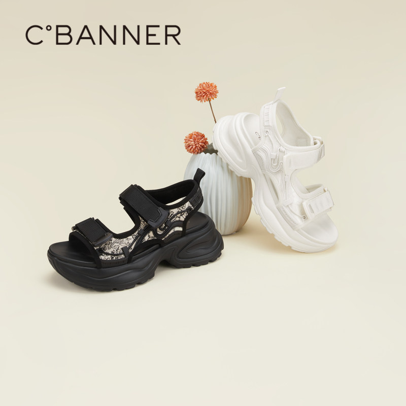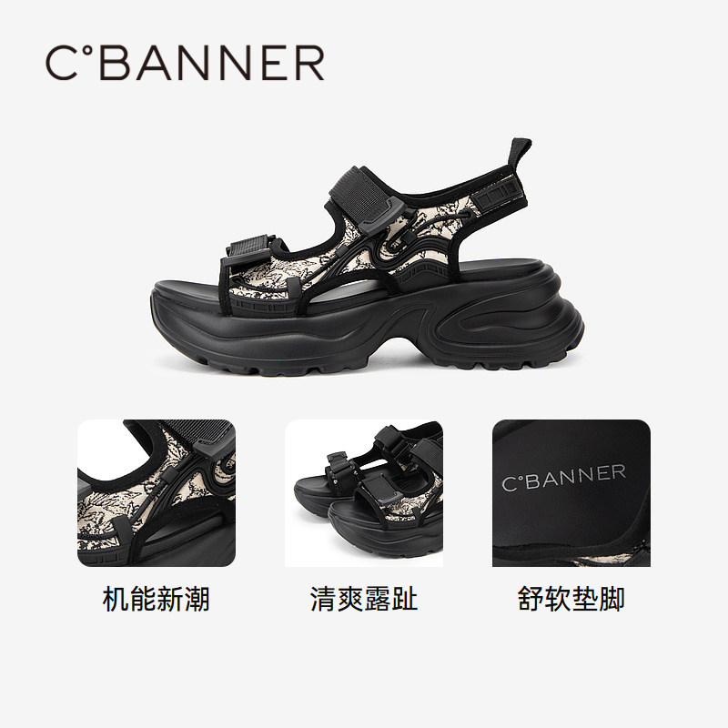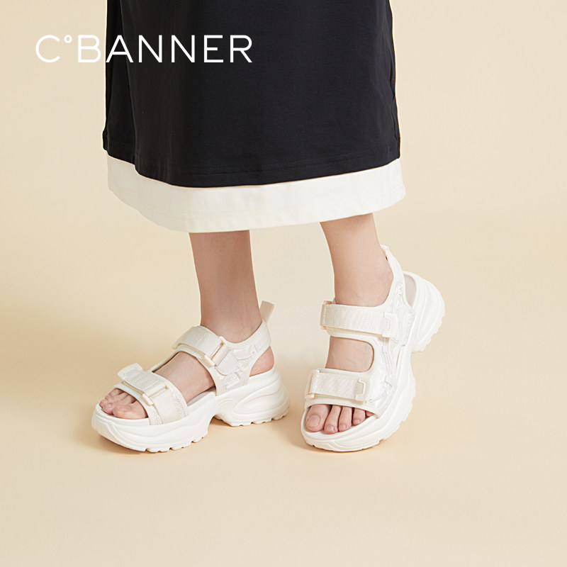 千百度夏季舒软踩屎感凉鞋通勤厚底运动凉鞋女新中式一字带凉鞋