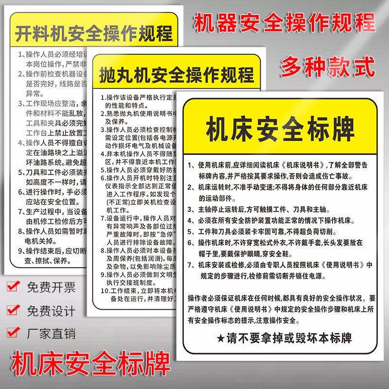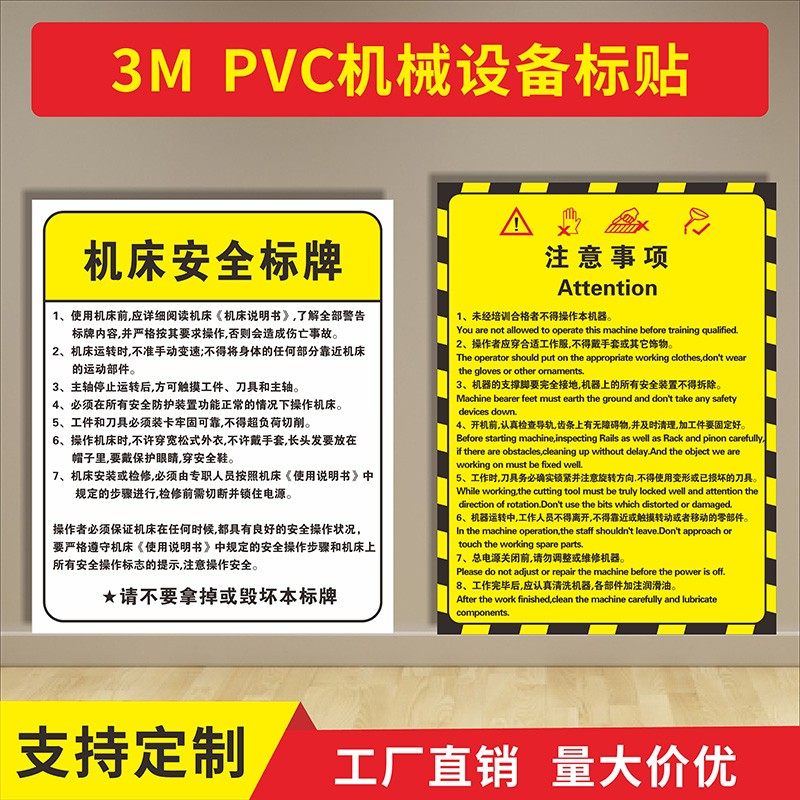 机器注意事项标识标牌机械设备数控加工机床安全空压机冲床锯床车床安全操作规程使用说明警示告贴纸自粘定制