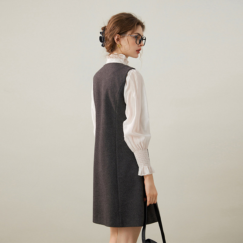 毛呢开衫式 背心裙 气质圆领单排扣 优雅