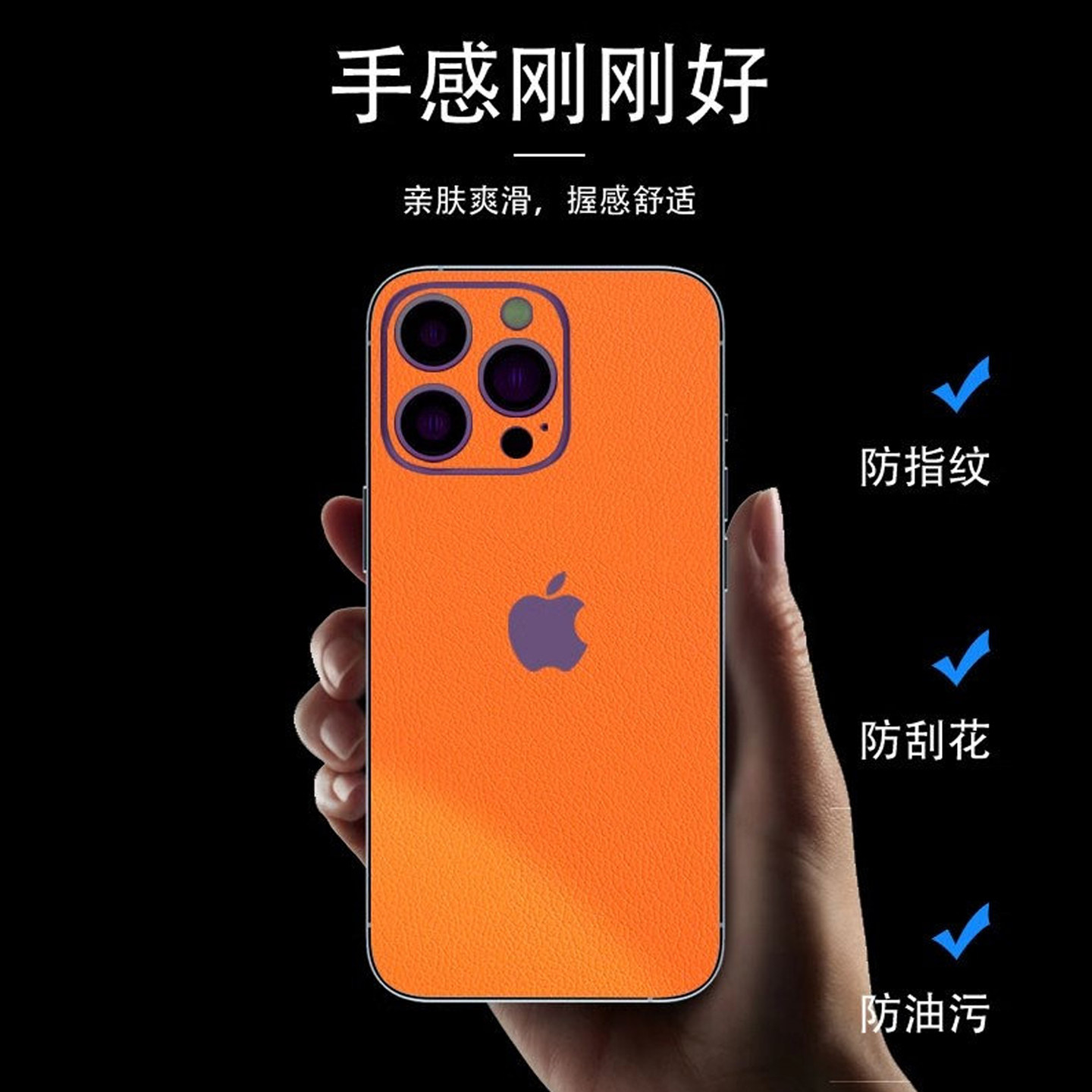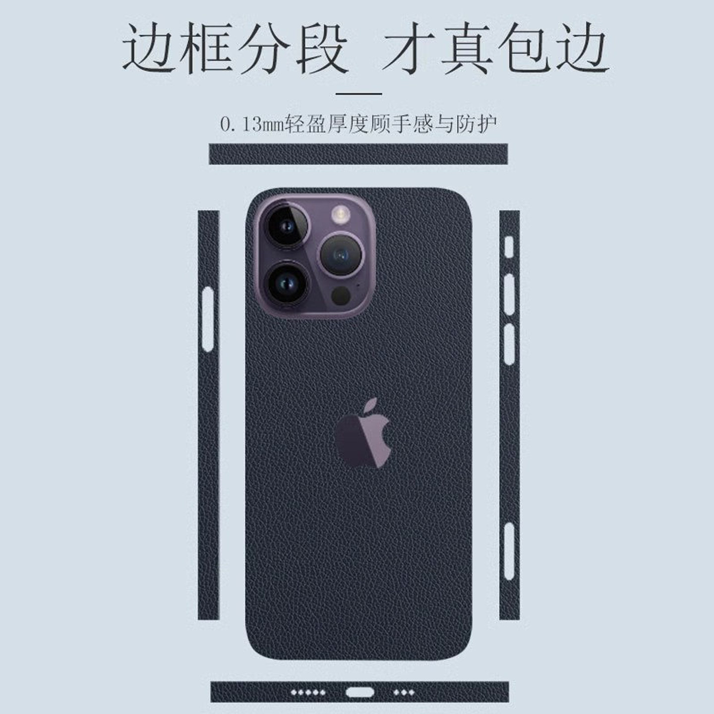 适用苹果17promax手机背膜16promax真皮全包边框15promax小牛皮纹防尘彩膜14plus侧边贴纸13mini后背改色膜12