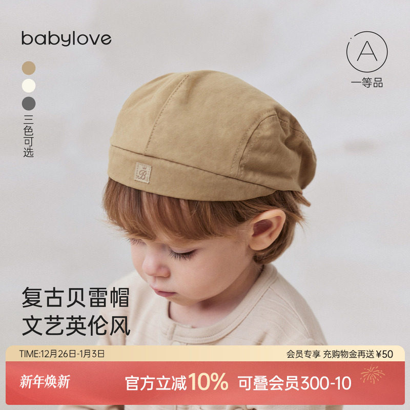 babylove婴幼儿帽子春秋季纯棉时尚宝宝贝雷帽纯色百搭洋气画家帽