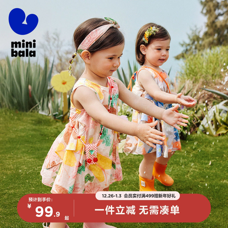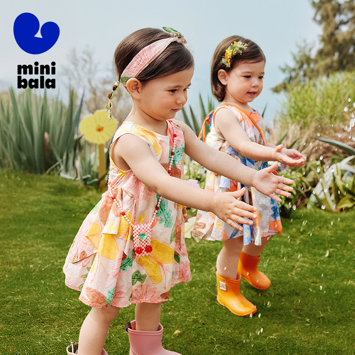 迷你巴拉巴拉纯棉连衣裙女童夏季裙子婴儿衣服洋气碎花新款周岁