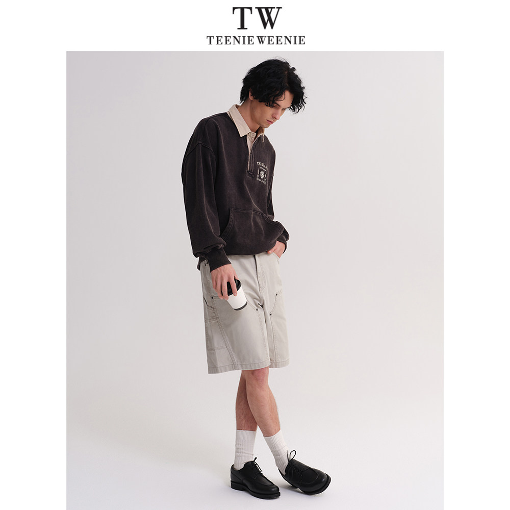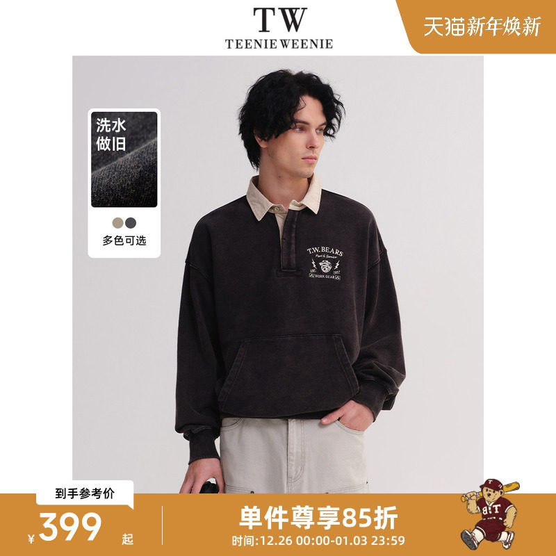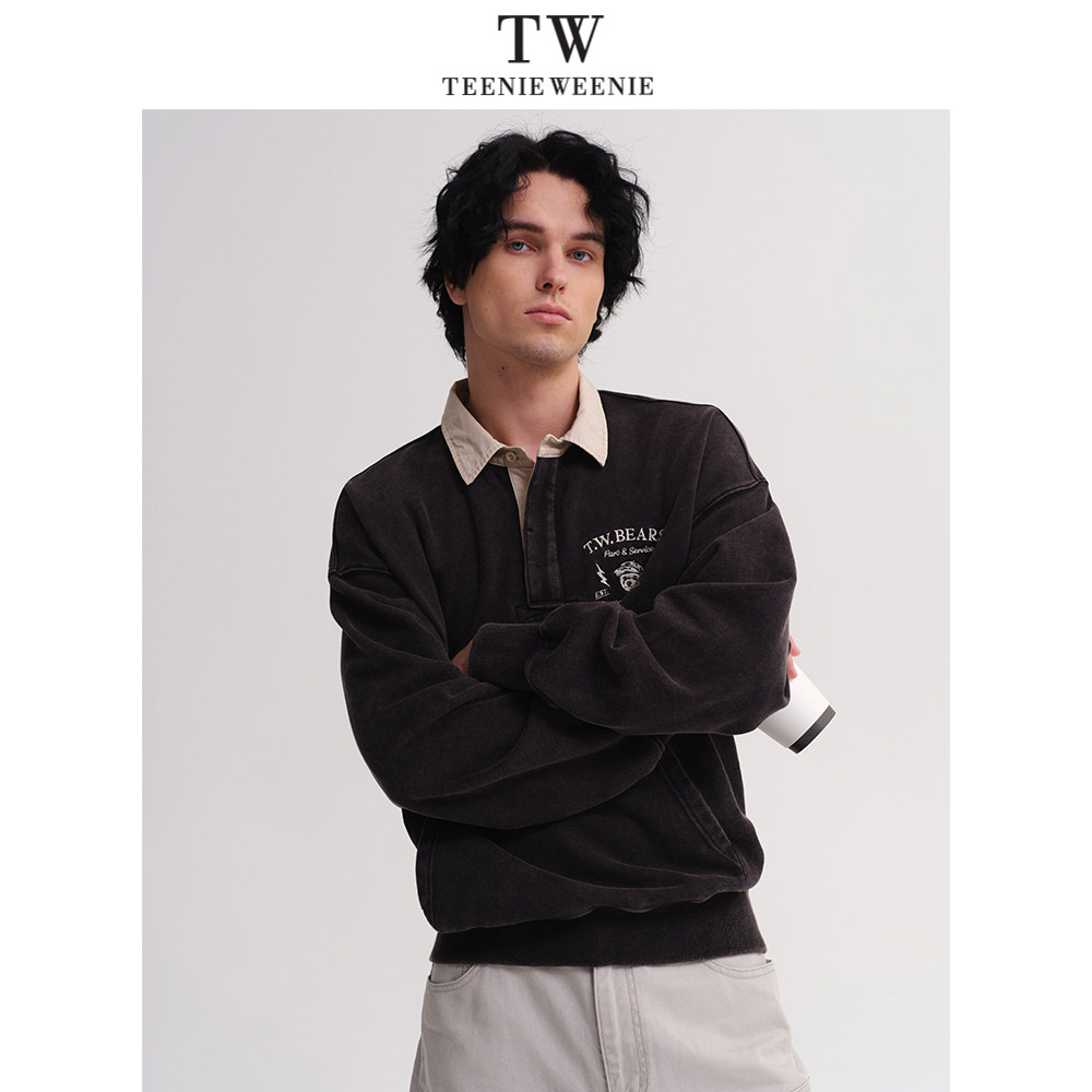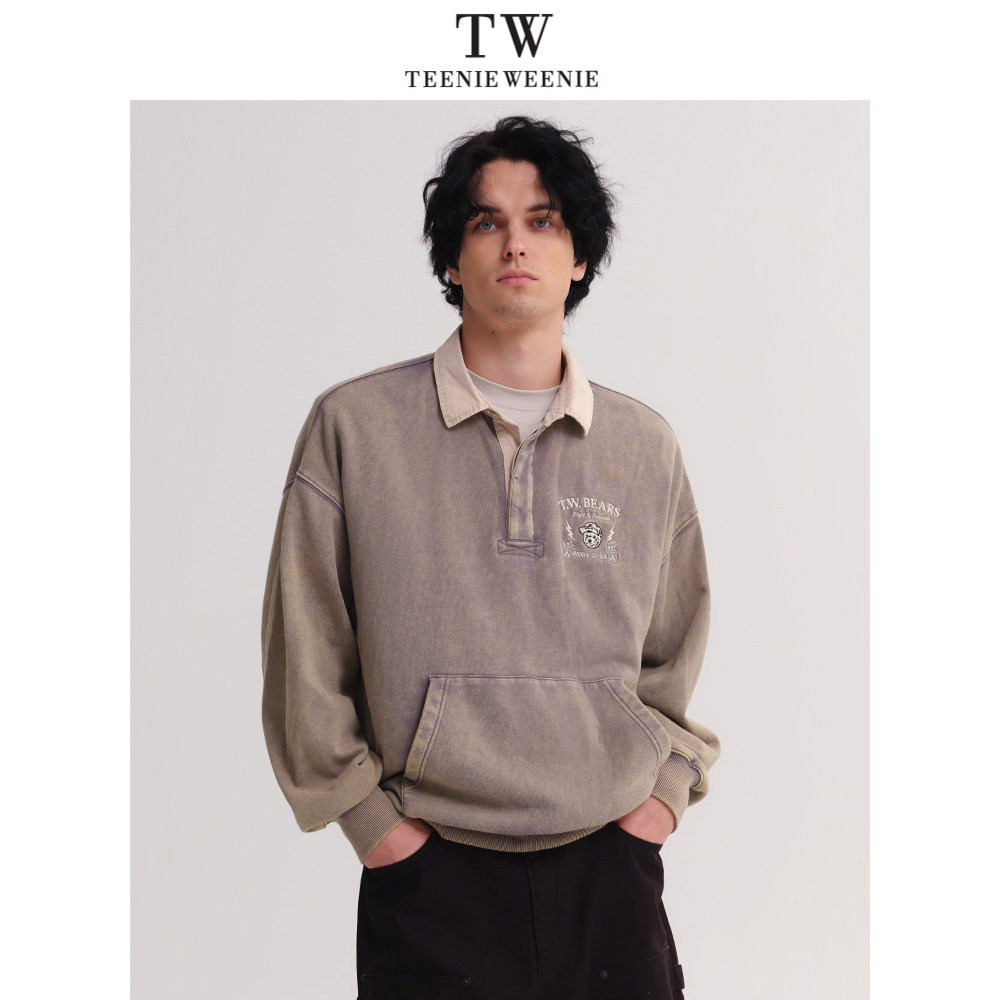 TeenieWeenie小熊男装卫衣2025春季新款翻领宽松潮流美式水洗上衣