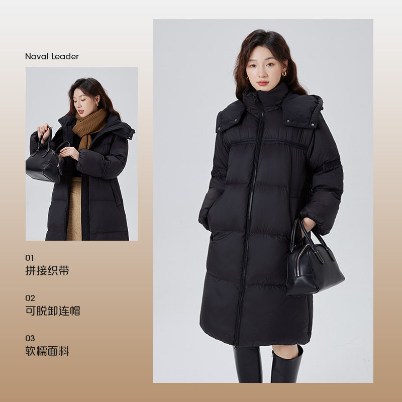 艾莱依长款鹅绒服泡芙软糯连帽韩版羽绒服女爆款冬季羽绒外套反季