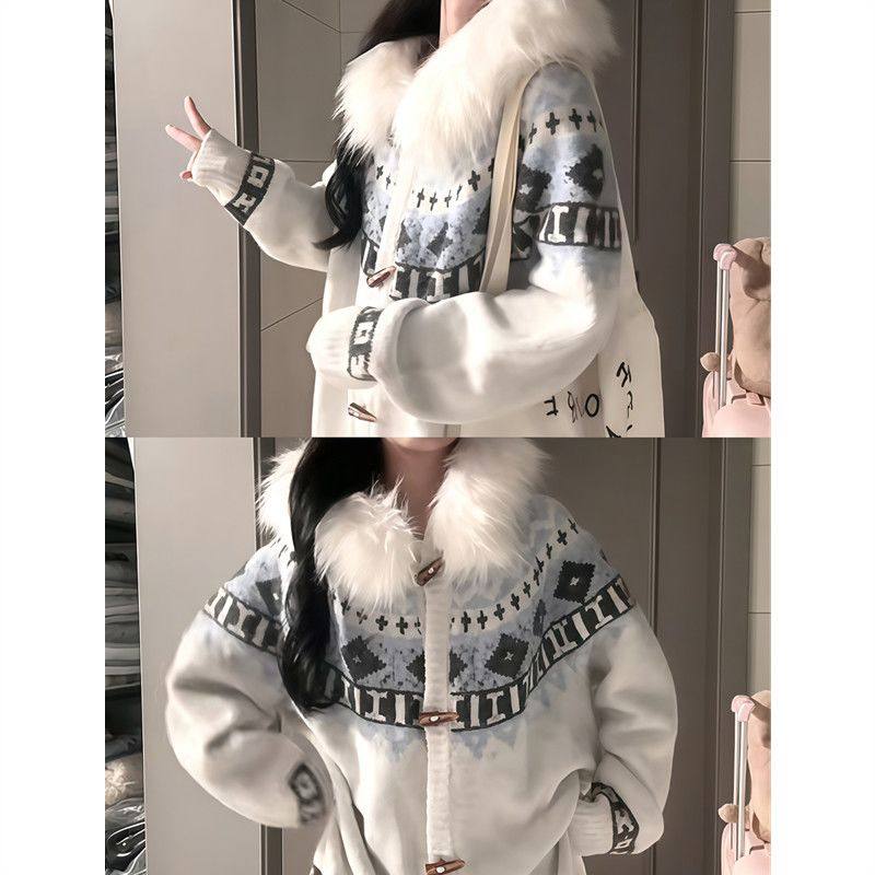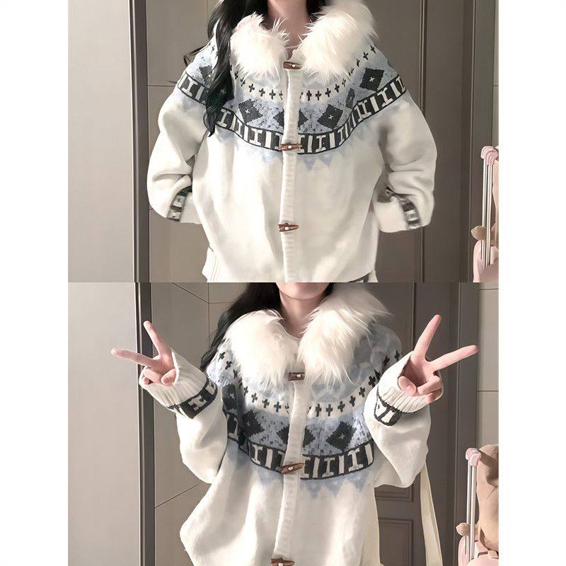 白色费尔岛提花连帽针织衫毛衣女2025早秋季绝美大码内搭上衣