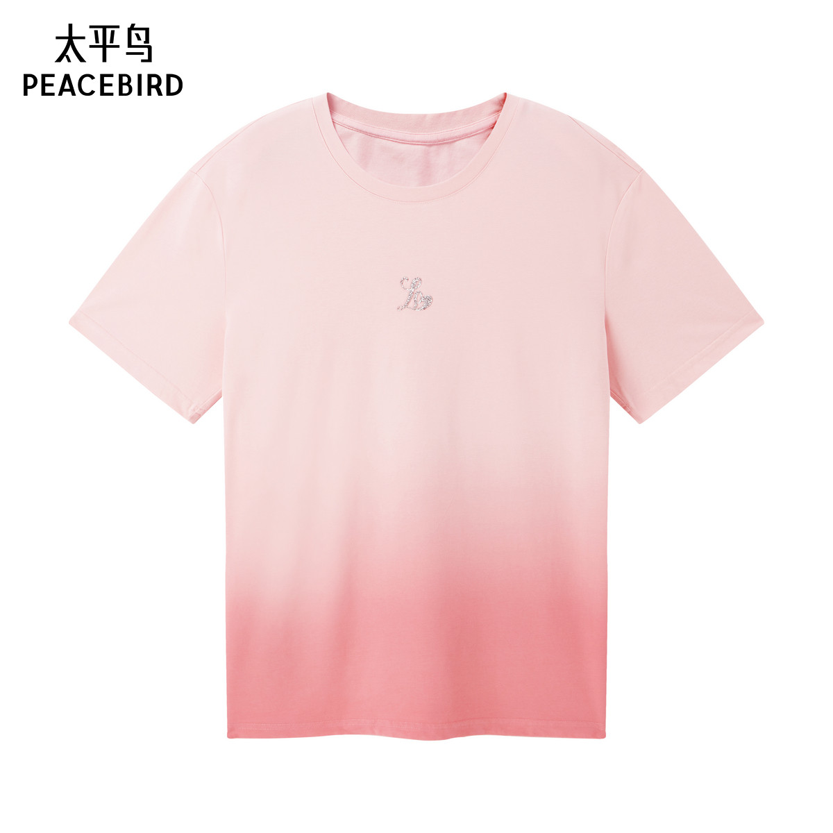 太平鸟女装 时尚渐变亮闪图案短袖T恤女士韩版精致上衣A3CNF1520