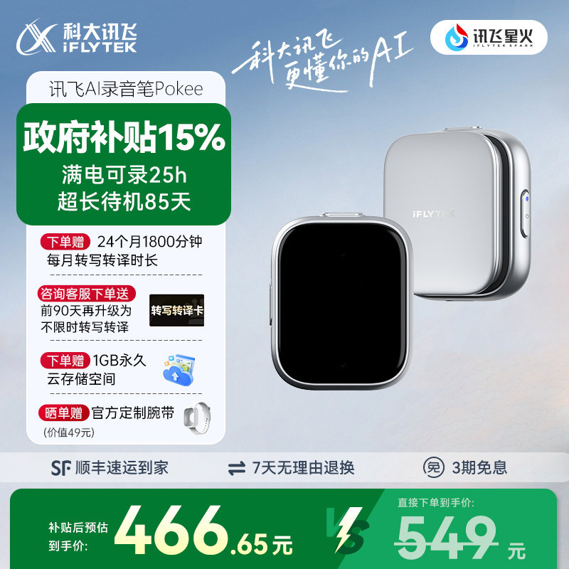 【咨询客服】科大讯飞录音笔Pokee专业会议录音笔随身实时转文字