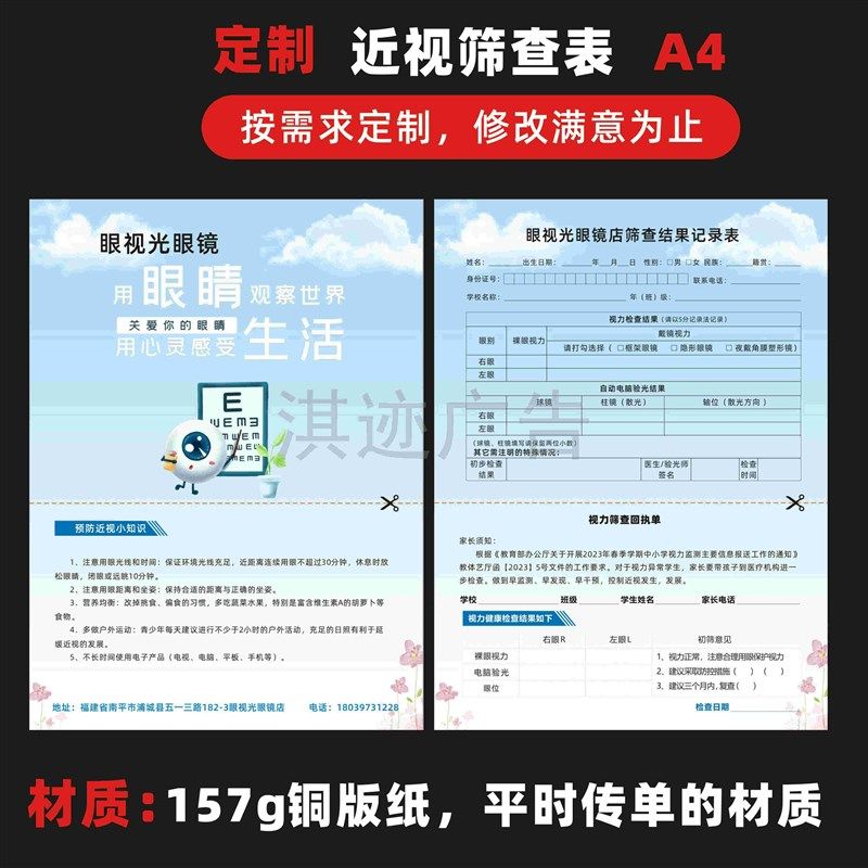 视力调研表学生筛查调查单视觉中心健康检查屈光发育档案服务中心
