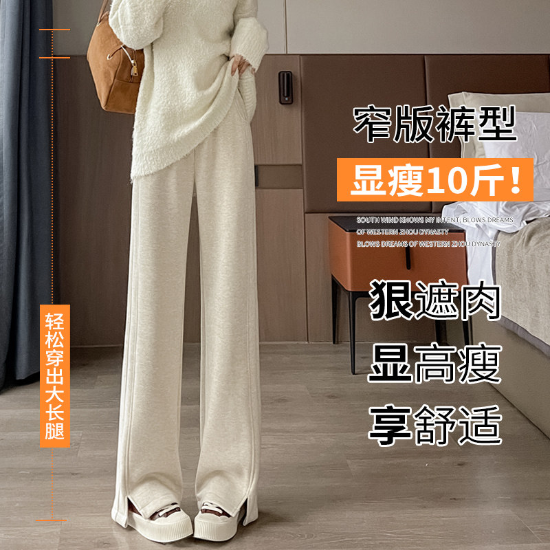梨型身材微喇休闲裤女2025秋冬加绒胖妹妹mm高腰弹力显瘦运动卫裤