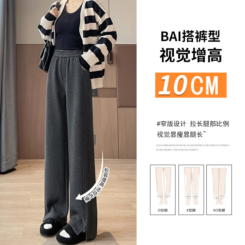 深灰色微喇休闲裤女2025秋冬加绒胖妹妹mm高腰弹力显瘦运动卫裤潮