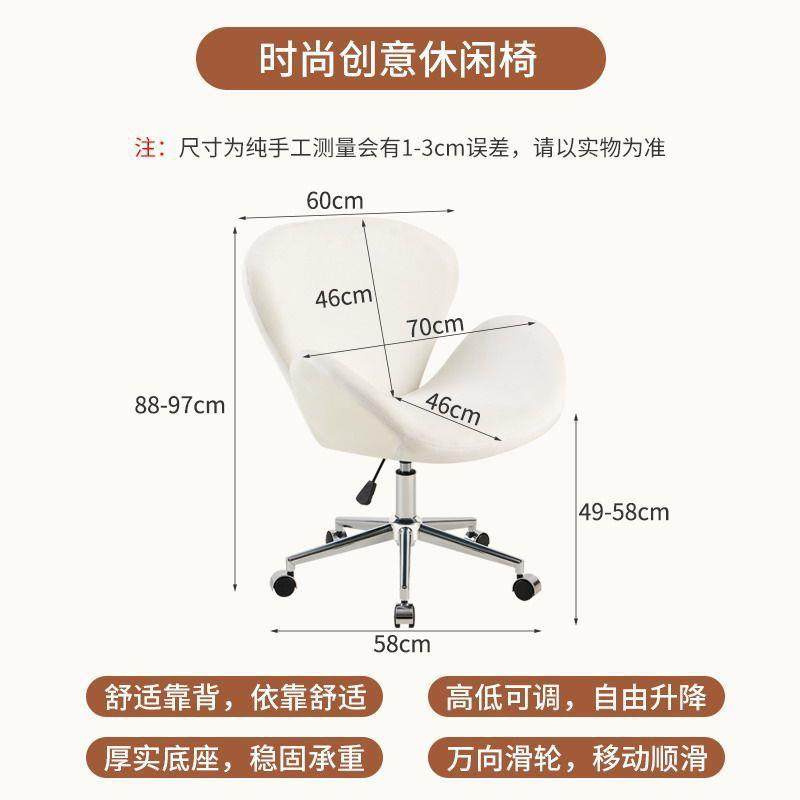 天鹅椅布艺沙发椅纯色奶油风舒适升降旋转皮艺化妆椅休闲椅梳妆椅