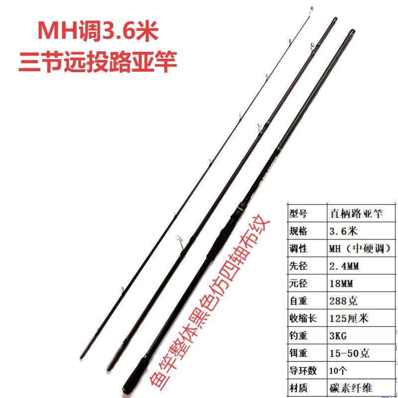 三节碳素MH调远投路亚竿3.6米虾皮钩翘嘴岸抛海钓大导环路滑锚竿