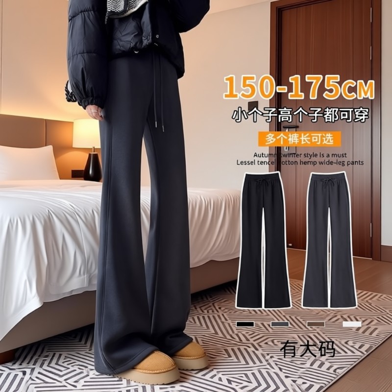 加绒裤子女秋冬高个子喇叭裤春秋季加厚宽松运动裤休闲微喇裤大码