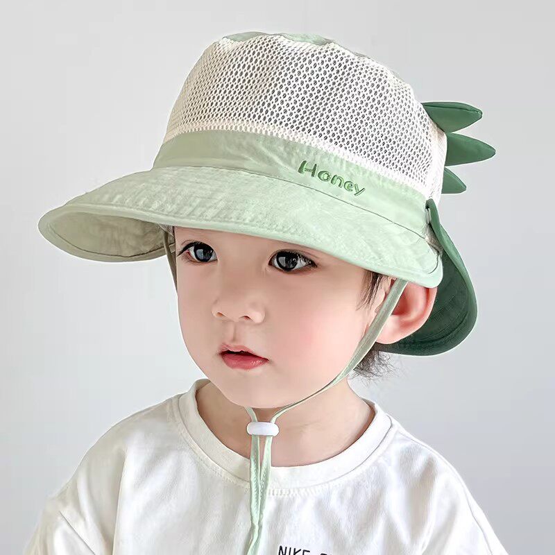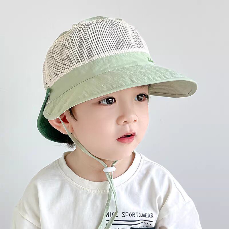 婴儿遮阳帽男童儿童帽子夏季渔夫帽女宝宝网大檐可拆披肩透气速干